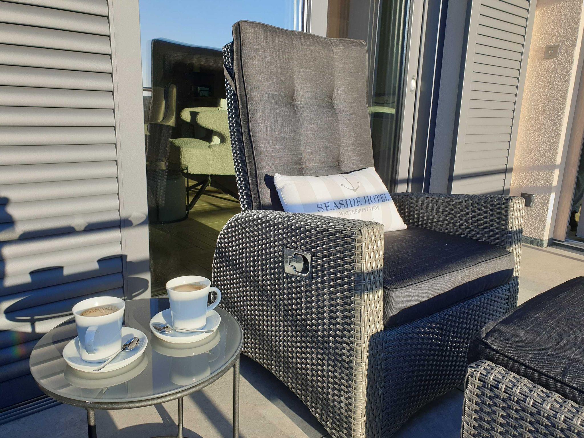 Und wenn Sie keine Lust haben essen zu gehen, bereiten Sie sich in der komplett eingerichteten Küchenzeile Ihr eigenes Dinner zu. Alles was es dazu braucht ist vorhanden. Moderne Küchengeräte, ob Mikrowelle, Multifunktionsbackofen oder Induktionskochfeld, ob geräumiger Kühlschrank oder großes Gefrierfach, machen das Schlemmen leicht. Und im Anschluss sorgt der Geschirrspüler schnell wieder für sauberes Geschirr. Zusätzlich steht eine Nespresso-Maschine mit Milchaufschäumer (6er-Kapsel-Grundausstattung vorhanden) oder wer es lieber klassisch mag eine French-Press zur Verfügung.