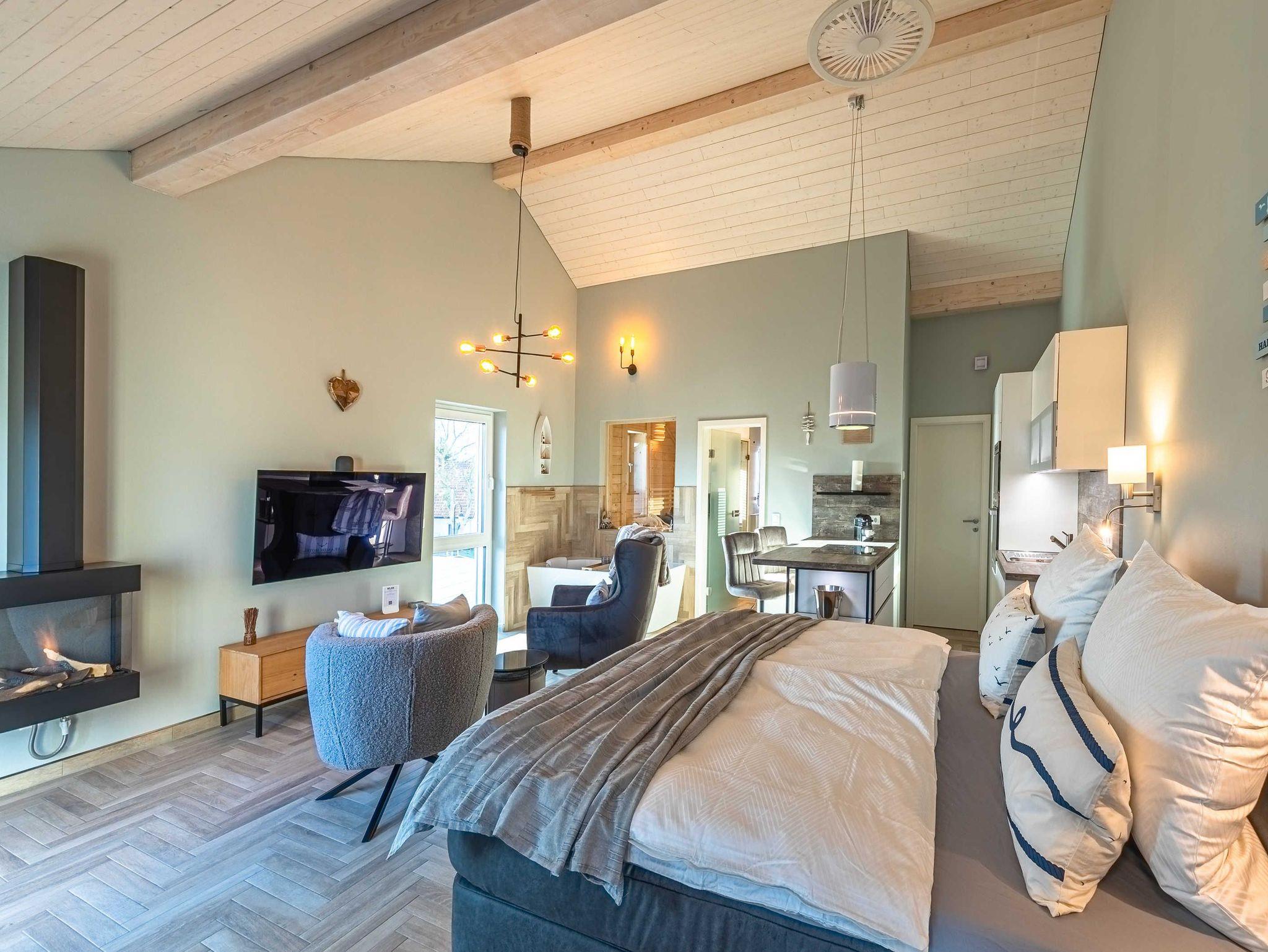Willkommen im Luxus Loft am Müritzufer. Entspannen Sie sich in der offenen Atmosphäre des luxuriösen Lofts mit eigener Sauna, Gaskamin, Badewanne mit Ausblick auf den See und der großen Balkon-Terrasse mit Blick auf das Panorama der Großen Müritz. Erleben Sie eine romantische Zeit zu Zweit - raus aus dem Alltags-Allerlei & und rein in einen luxuriösen Urlaubstraum.