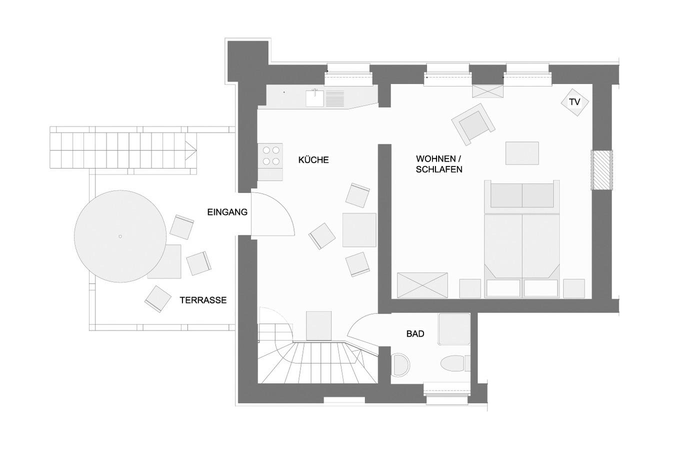 Stue/badeværelse/soveplads