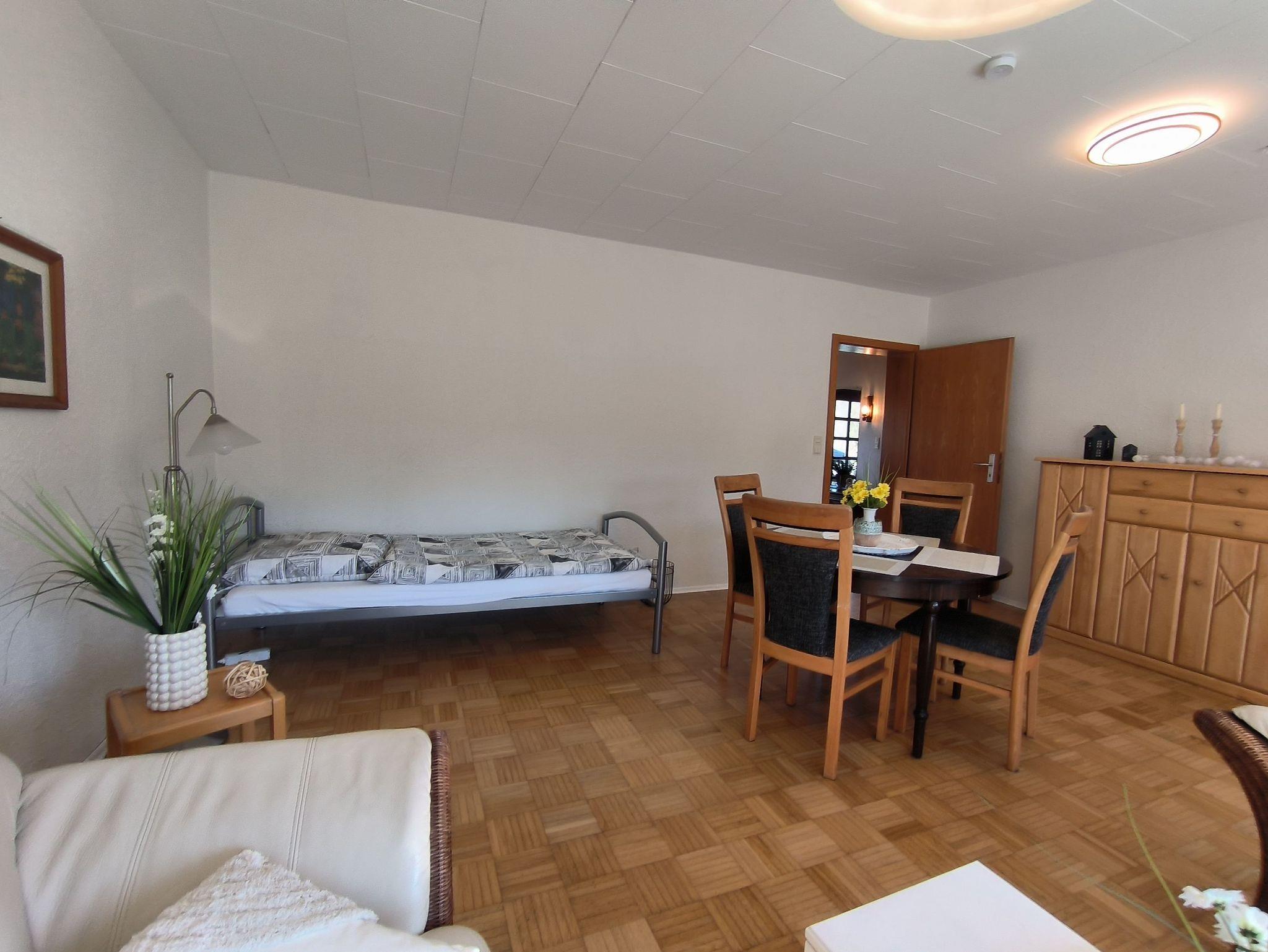Die Ferienwohnung hat nur ein Schlafzimmer mit zwei Schlafplätzen. Bei Bedarf kann ein vollwertiges Bett für eine dritte Person im Wohnzimmer aufgestellt werden (Aufbettungszuschlag). Wir bitten um persönliche Anfrage. Ein Kinderreisebett wird auf Nachfrage kostenfrei zur Verfügung gestellt.