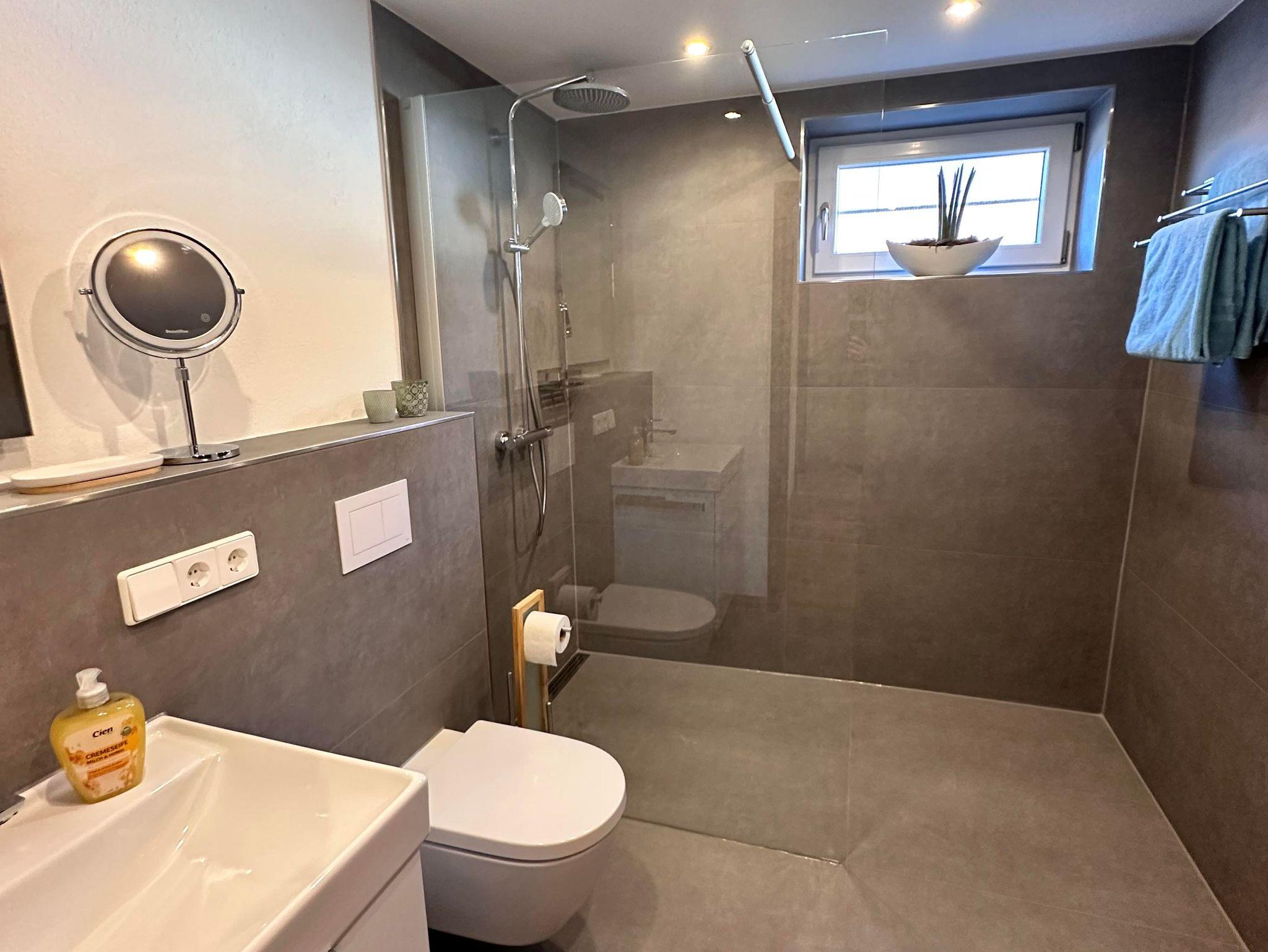• Badezimmer mit begehbarer Dusche und WC