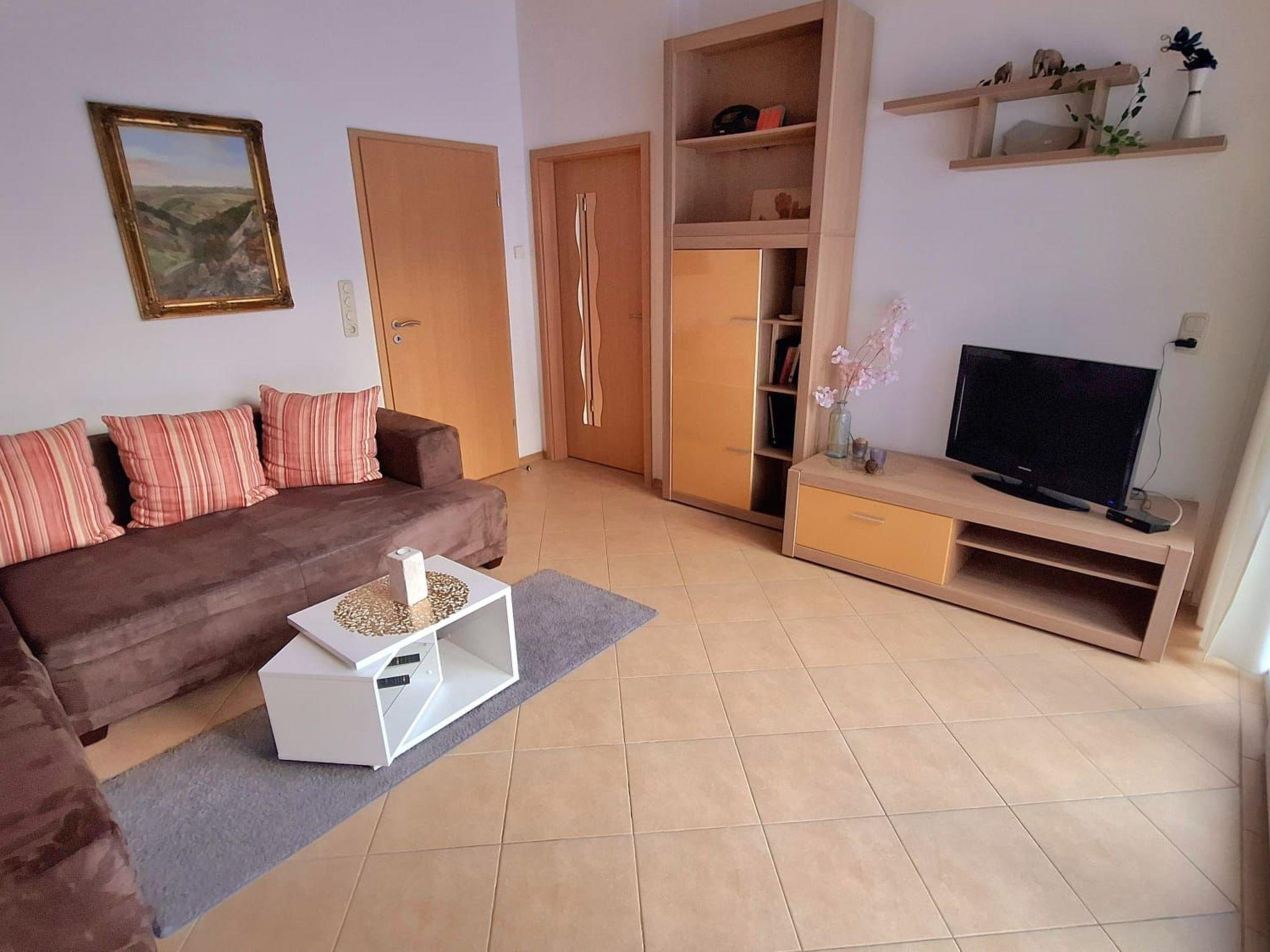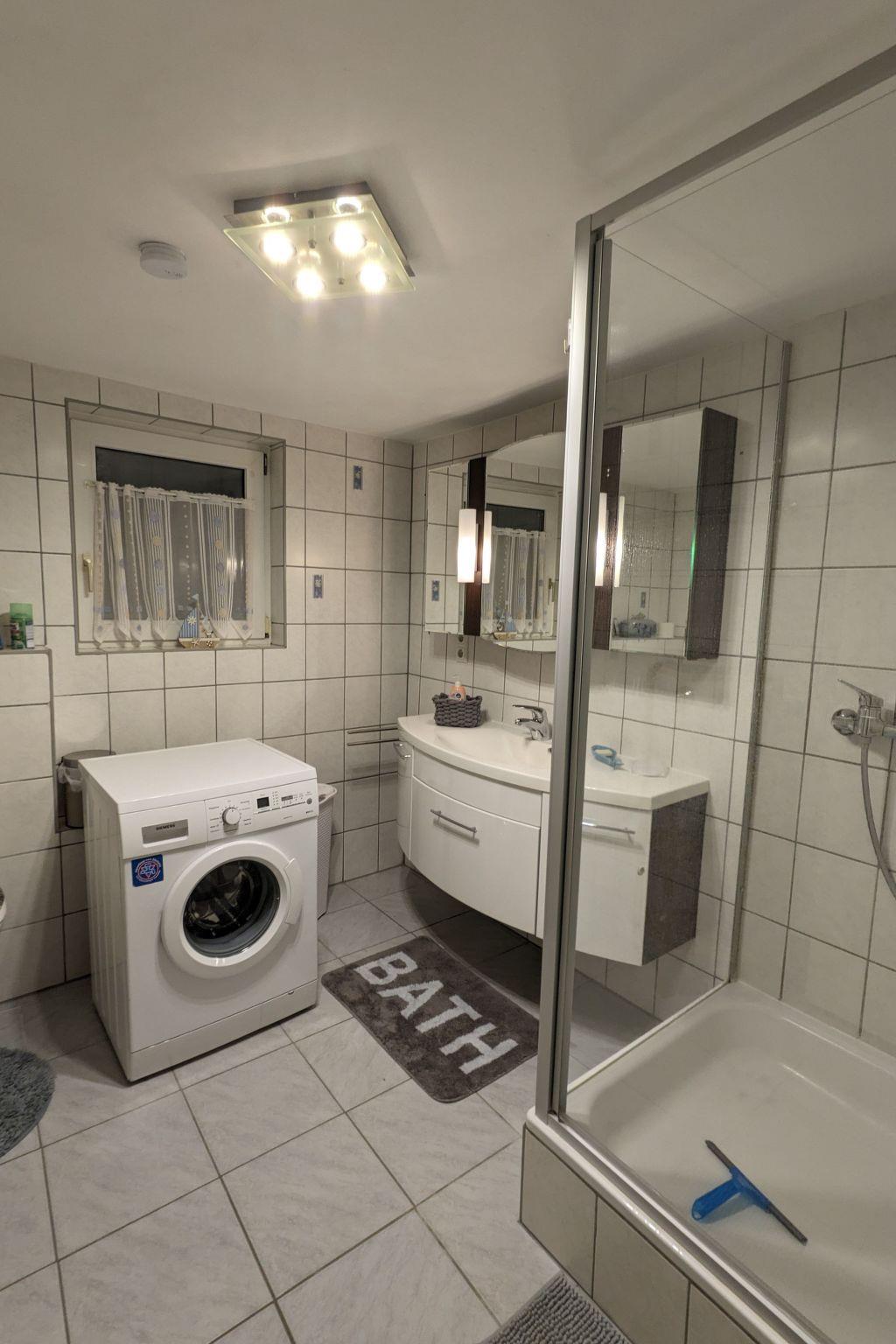 A 65 m2 holiday flat for 2 to max. 4 people awaits you there, where you can wake up in the morning with a view of nature and enjoy breakfast undisturbed on the terrace in your own garden in fine weather. The flat is equipped with an eat-in kitchen (dining room and kitchen with dishwasher, cooker, fridge and freezer), living room (satellite TV, sofa bed), bedroom with double bed, bathroom (WC, shower, washing machine) and a smaller room with sofa bed and a chest of drawers that can be used as a changing table.