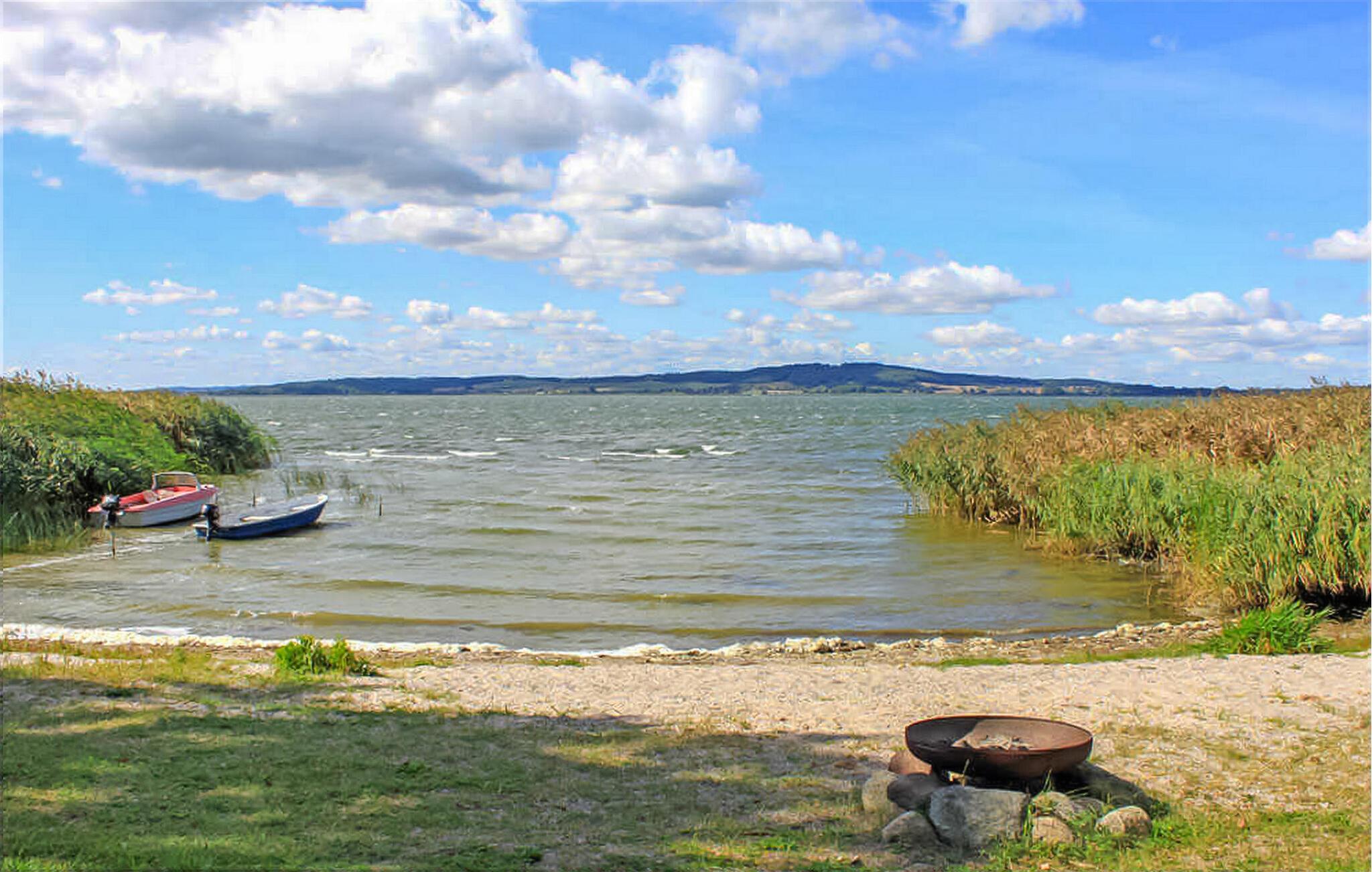 Feriekomplekset har 10 separate ferielejligheder i forskellige størrelser i rækkehusstil. Kun en lille adgangsvej adskiller komplekset fra bredden af søen Kummerow, som ligger omkring 35 meter væk, og den naturlige strand. På et samlet areal på 7.500 kvadratmeter er der forskellige siddepladser med siddepladser, liggestole og solmøbler, et bordtennisbord, bordfodbold, en grillplads, en lille legeplads med gynger, sandkasse, klatrestativ, trampolin samt som cykelrum, parkeringspladser og direkte adgang til søen Badeplads (naturstrand) og fiskemuligheder. Udlejning af cykler samt ro- og motorbåde efter aftale (mod betaling). En kanoudlejning og en surfskole ligger omkring 600 meter derfra. Der kan også vaskes i det fælles bryggers. Betales på stedet: vand og energi efter forbrug. Du kan medbringe dit eget sengetøj eller leje det på stedet mod et gebyr. Håndklæder skal medbringes. WiFi 2 EUR/dag. Kæledyr: Et kæledyr er tilladt i denne ejendom. Komfortabelt udstyr med: stue (polstrede møbler, fladskærms-tv, radio, cd), åbent køkken-alrum (komplet med el-komfur med ovn, køleskab med fryser, opvaskemaskine, spisebord, diverse køkkenmaskiner), soveværelse ( dobbeltseng), bad/WC, Elvarme. En fodskammel, en barneseng og en høj stol er til rådighed for børn. Lejlighederne har desuden to møblerede terrasser og liggestole. Brug af vaskemaskine i fælles bryggers. Sommersdorf er en landlig by på den østlige bred af søen Kummerow, beliggende mellem Reuterstadt Stavenhagen og hansestaden Demmin. Restaurant og strand i byen. Regionen er særlig attraktiv for cyklister, vandrere og vandvandrere på grund af det unikke landskab i Mecklenburg Lake District og Lake Kummerow.