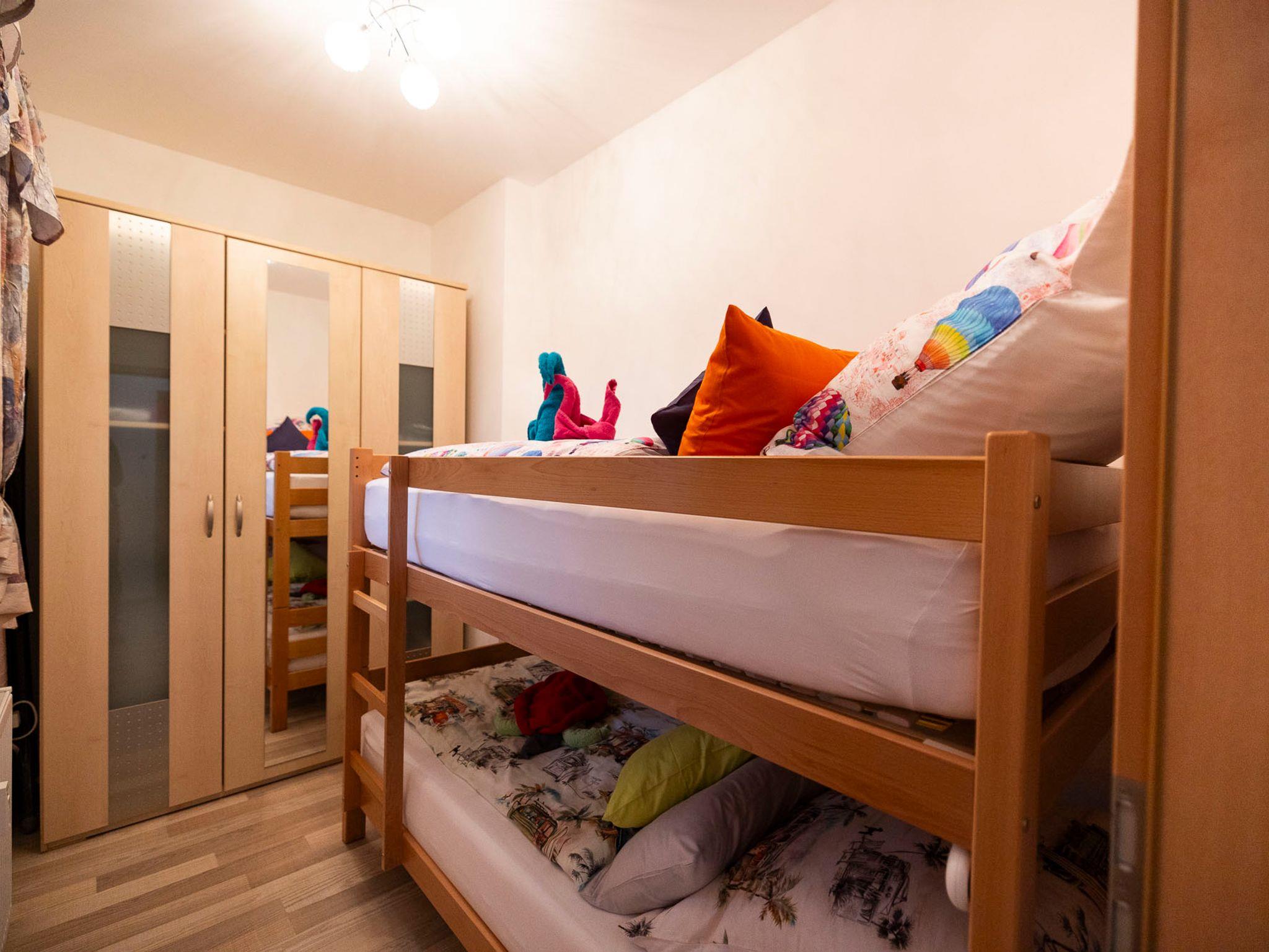 Im Schlafzimmer 2 befindet sich ein gr0ßer Kleiderschrank, ein Stockbett (90x 200cm) ideal für 2 Kinder.