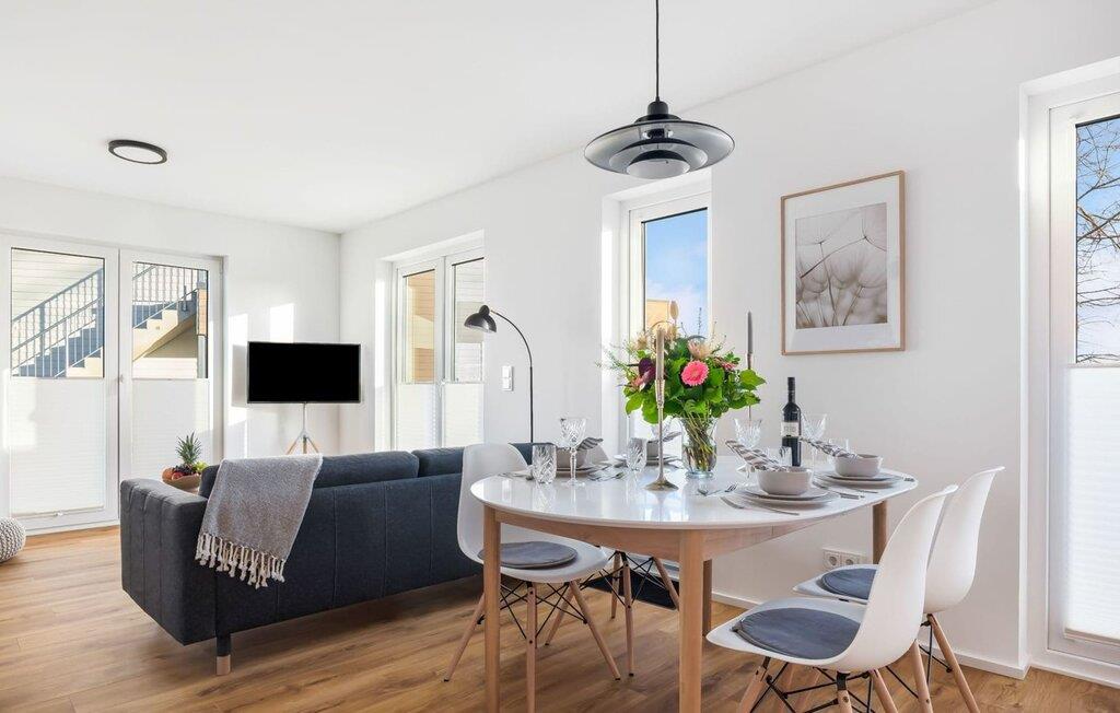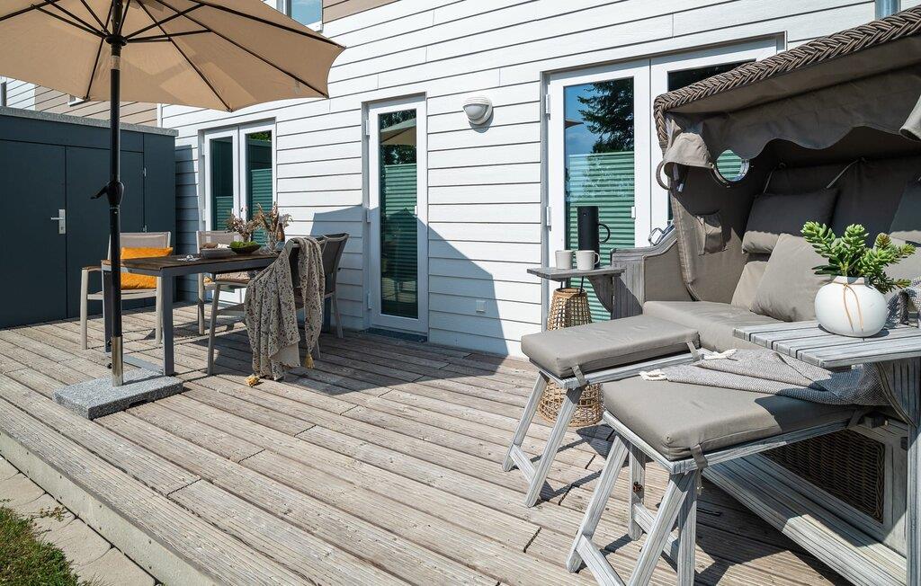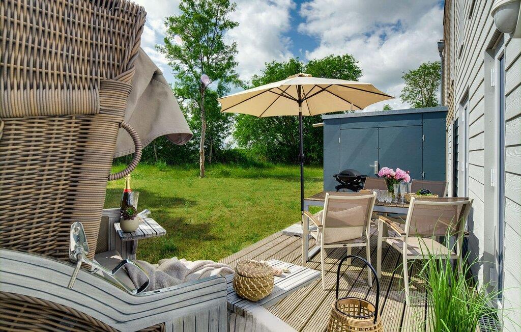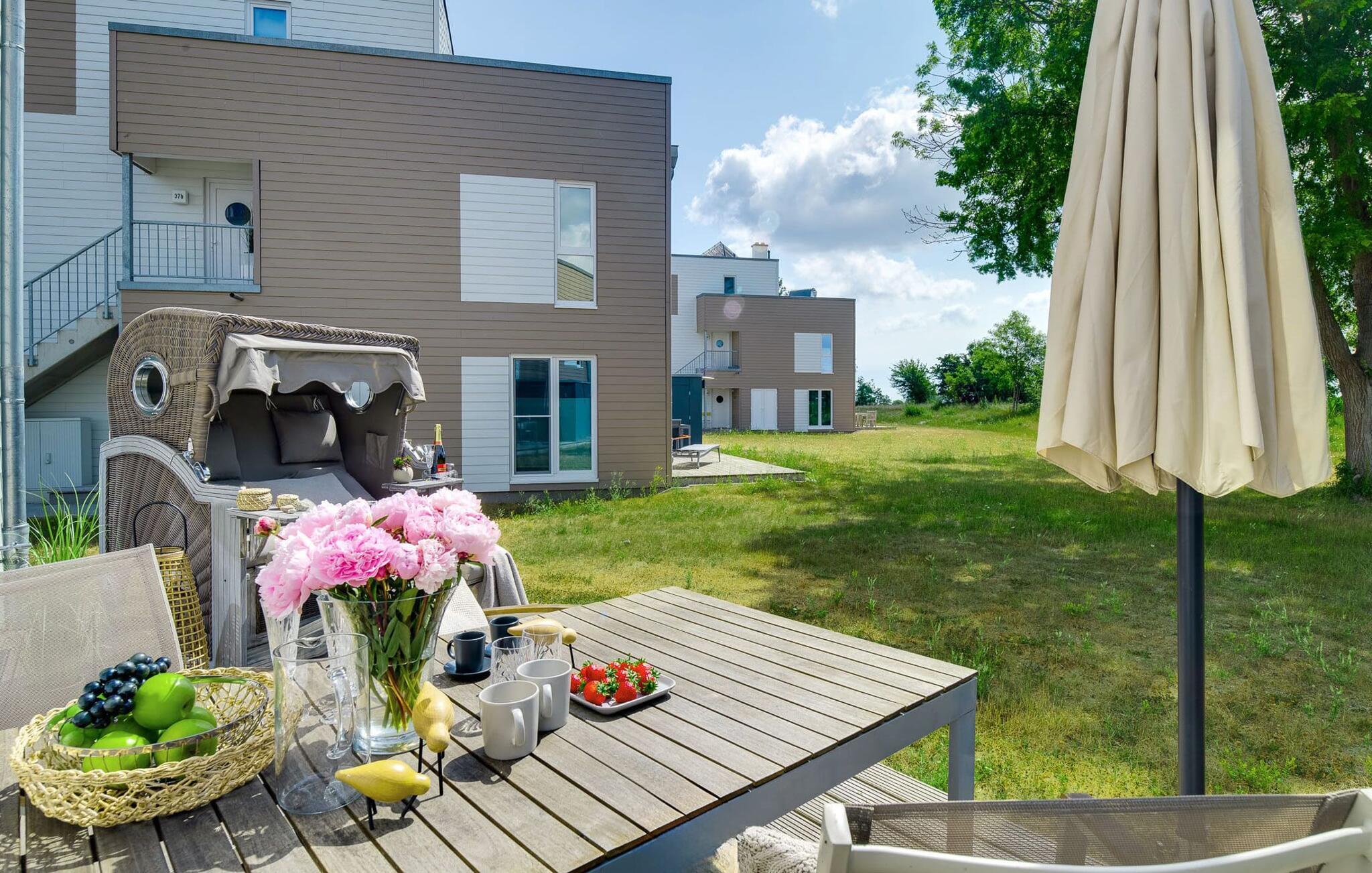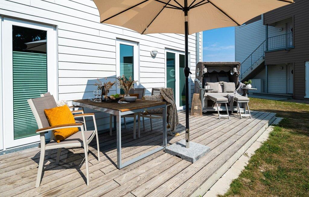 Den naturskønne sandstrand Weidefelder med kiosk, restaurant, strandstole og forskellige vandsportsfaciliteter er let tilgængelig til fods eller på cykel. For at sikre, at I kan nyde ferien fuldt ud, tilbyder lejligheden jer en særlig bekvemmelighed: Indtil slutningen af ??oktober kan gæster, der bor på solsiden, gratis benytte en strandstol på den rolige, familievenlige resortstrand ORO Beach, udover den komfortable strandstol på lejlighedens terrasse. Firbenede venner kan også boltre sig på hundestranden i den bagerste del. Den fantasifuldt designede minigolfbane Adventure Golf og havnepromenaden i Baltic Sea Resort med Olpenitz Marina, forskellige butikker, restauranter og et supermarked inklusive et bageri ligger blot få minutters gang derfra.