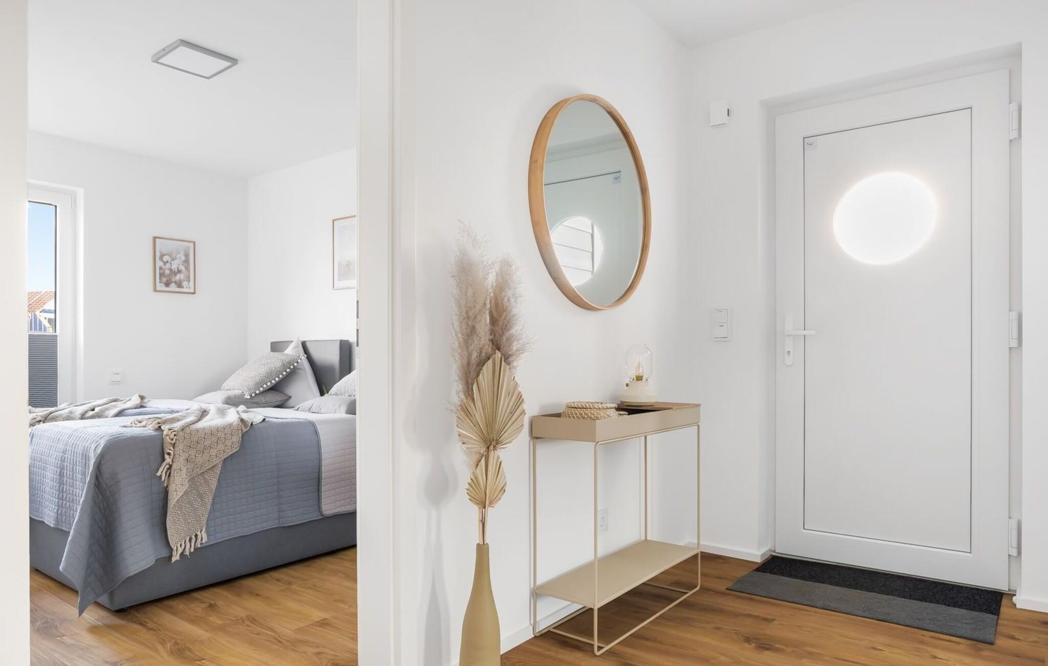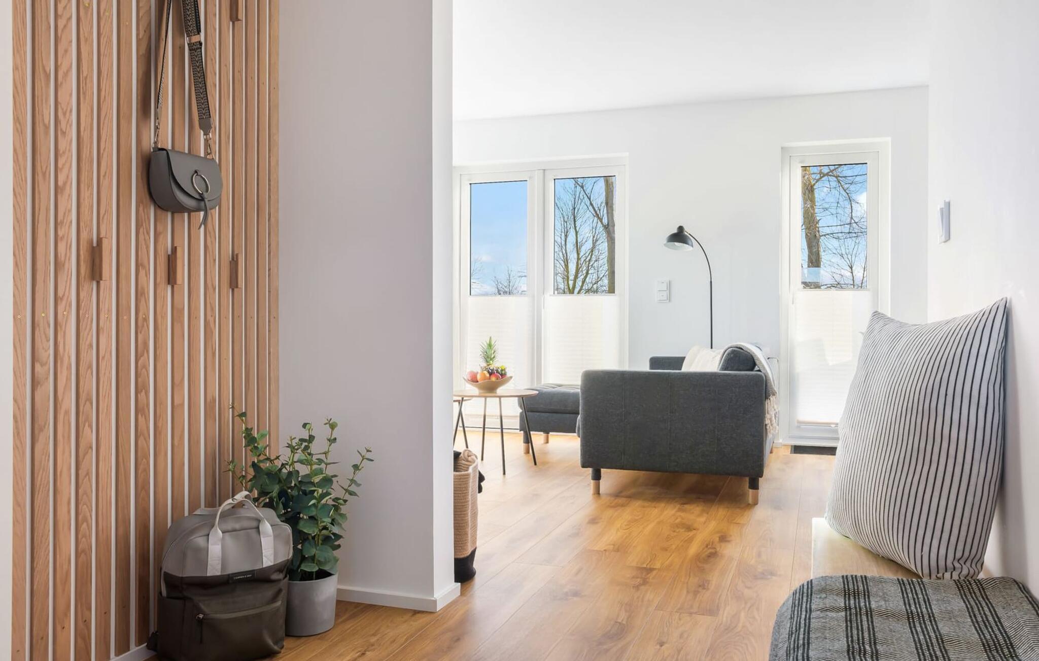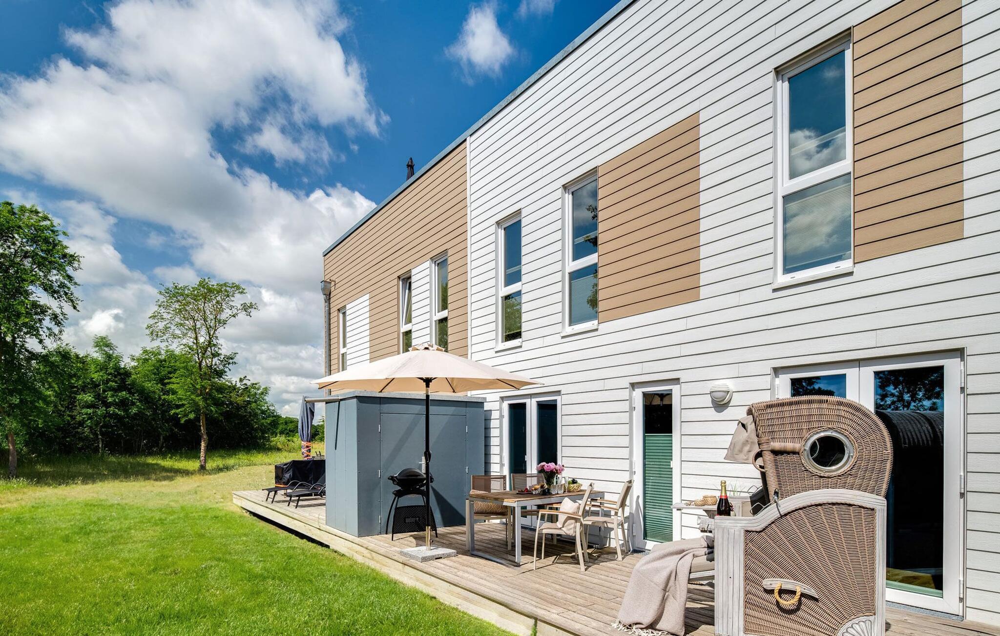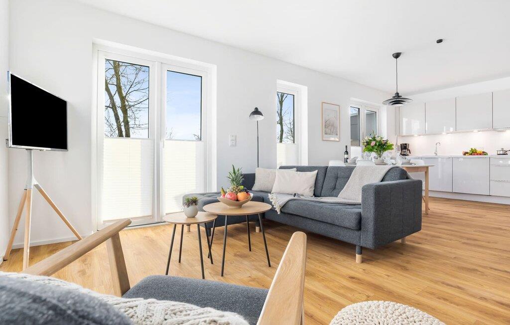 SONNENSEITE er en rummelig og moderne ferielounge i stueetagen med direkte udsigt over naturreservatets strandenge og marker.