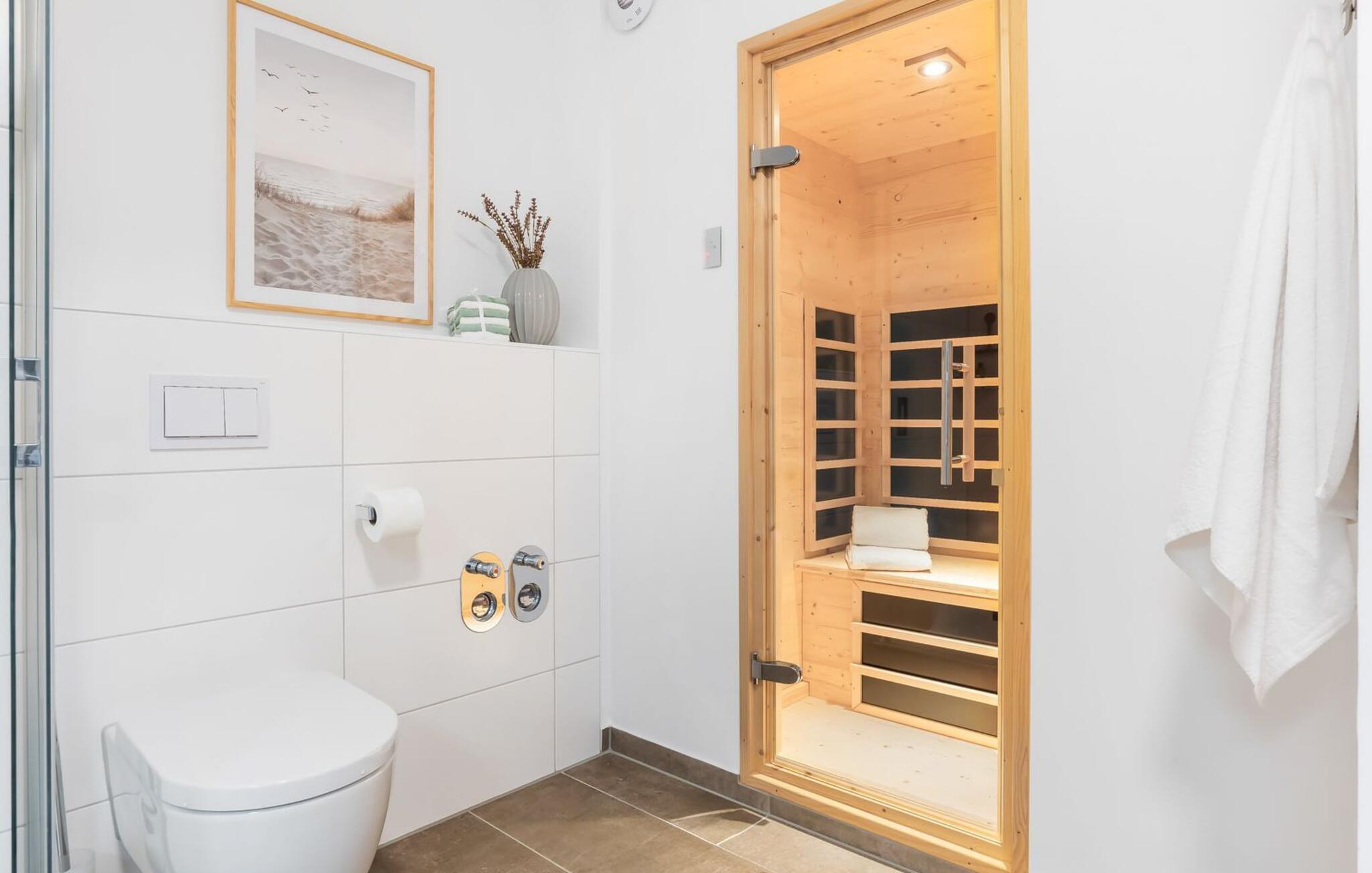 Brusebadet med en stor regnbruser og infrarød sauna sørger for uforglemmelige wellness-øjeblikke, som I kan værdsætte i lang tid.
