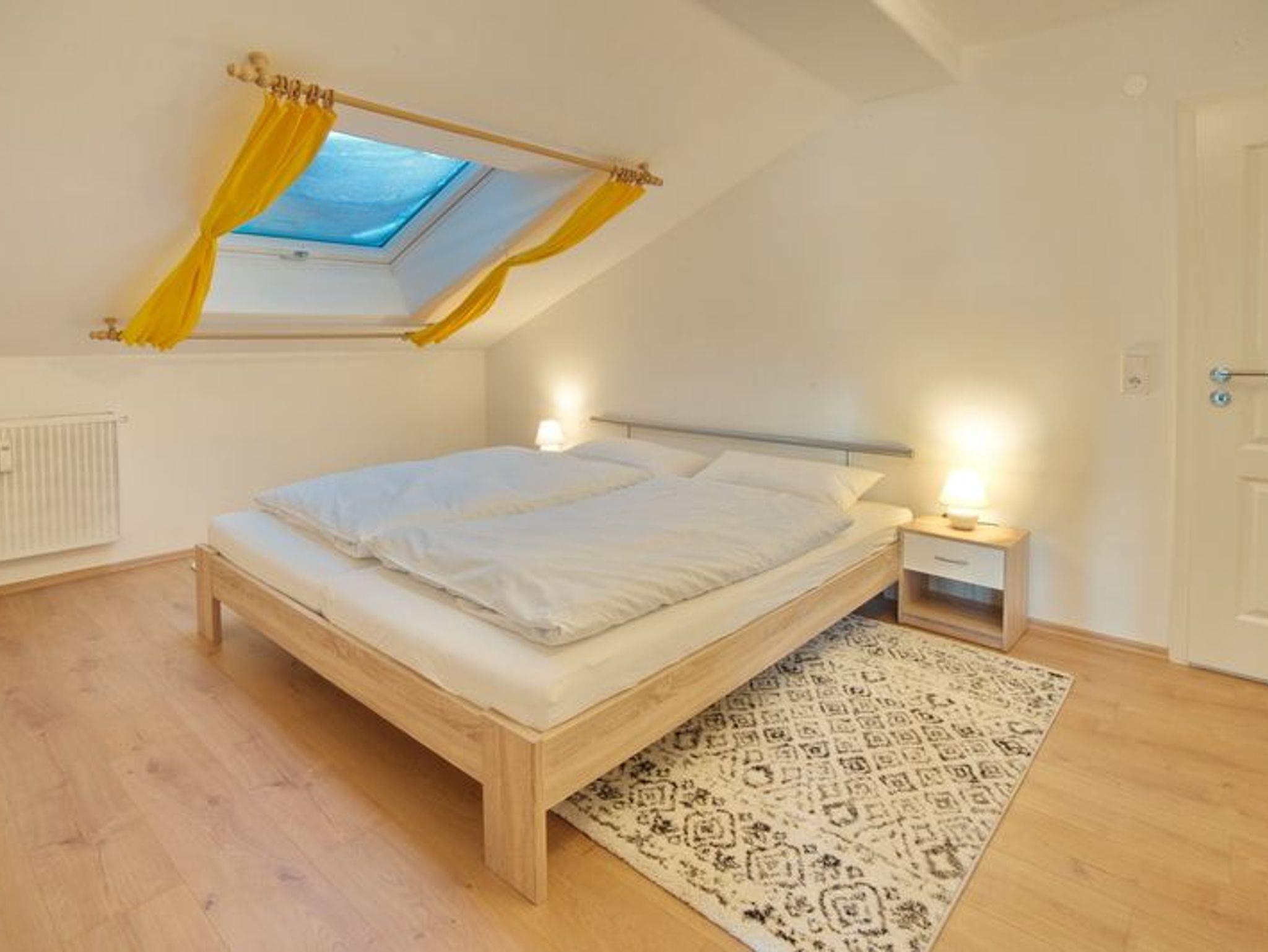 Die Ferienwohnung bietet neben 2 Schlafzimmern mit Doppelbett (180x200) ein weiteres Schlafzimmer mit zwei Einzelbetten (140x200).