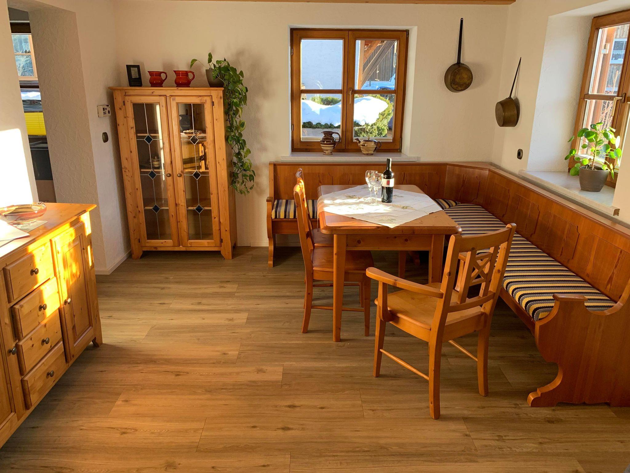 -Essbereich mit orginal Allgäuer Lärchen-Eckbank aus Schreinerhand