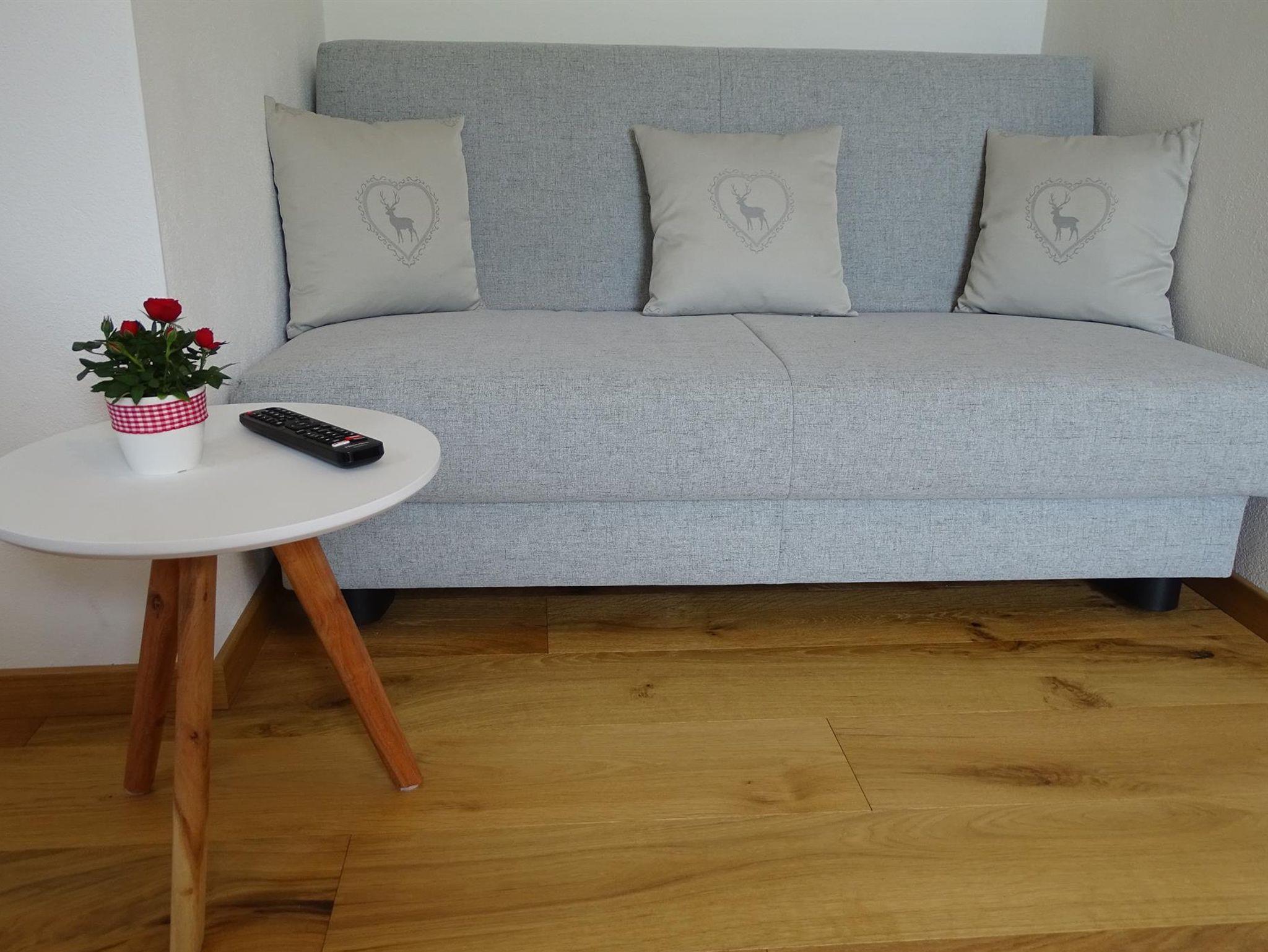 Unser Haus (Fertigstellung 2019) mit Ferienwohnung verfügt über Parkettboden, Fußbodenheizung, komplett ausgestattete Küche, Ausziehcouch (140cm) im Wohnküchenbereich integriert und einem seperatem Schlafzimmer. Bettwäsche wird gestellt.