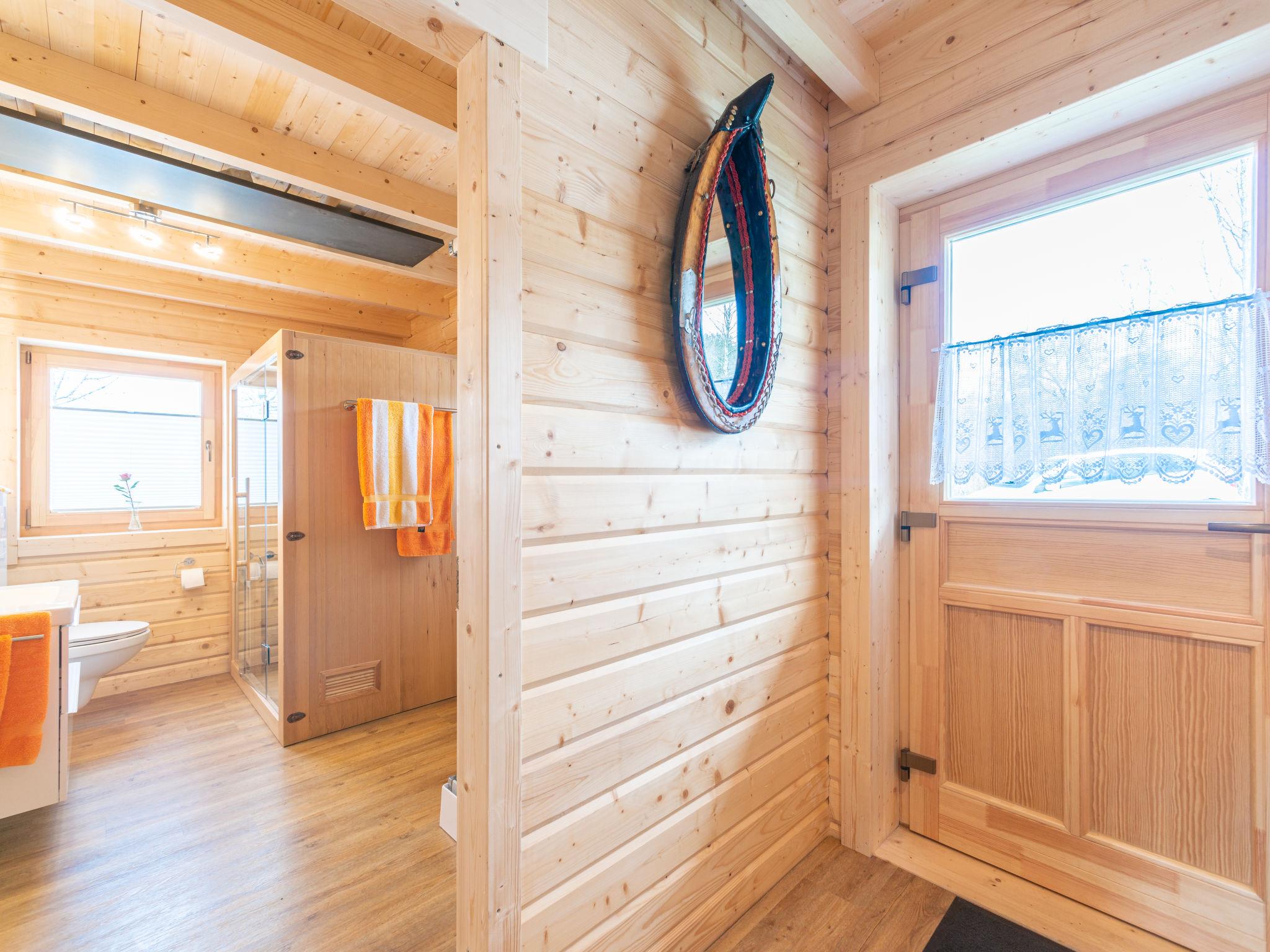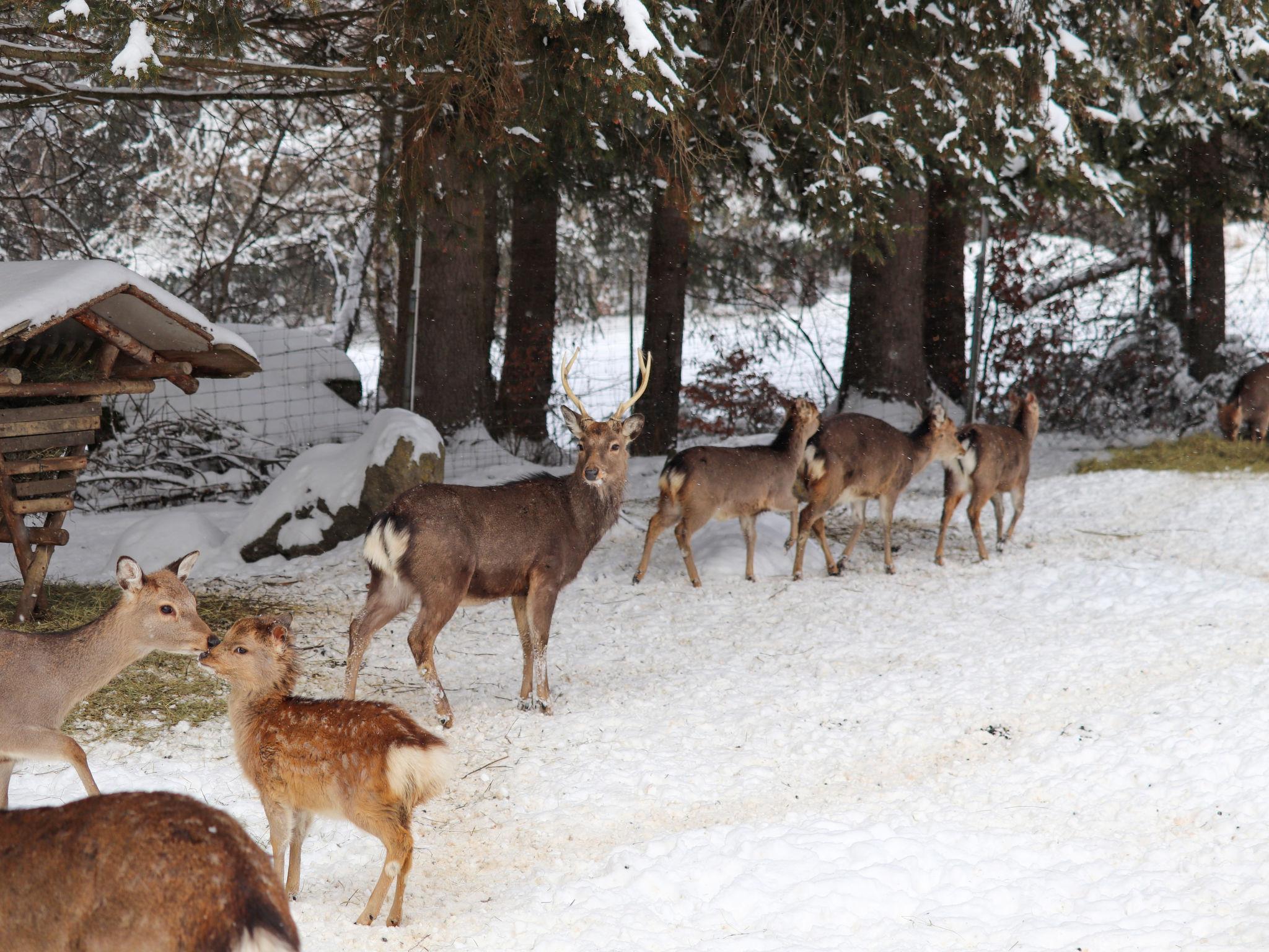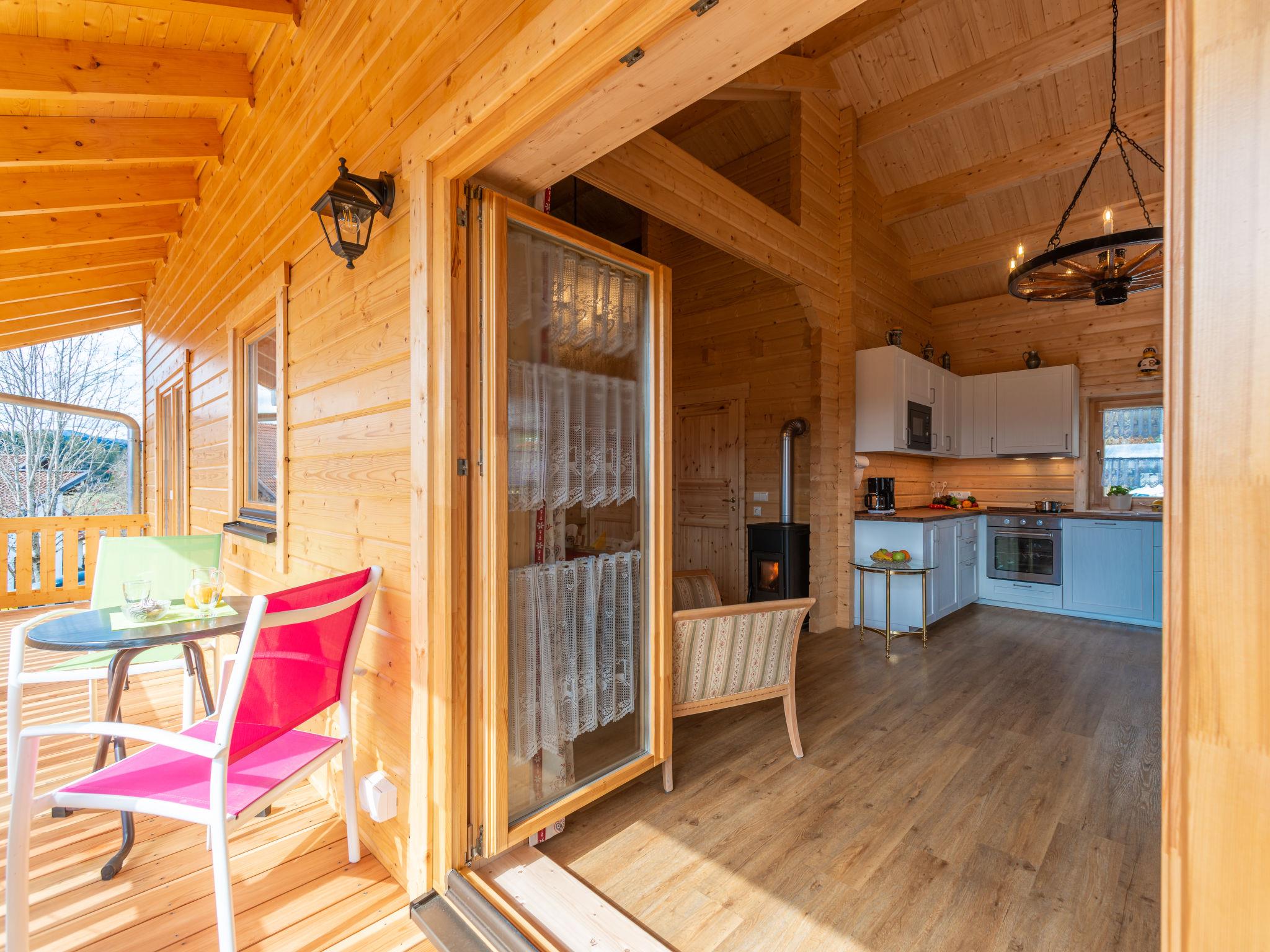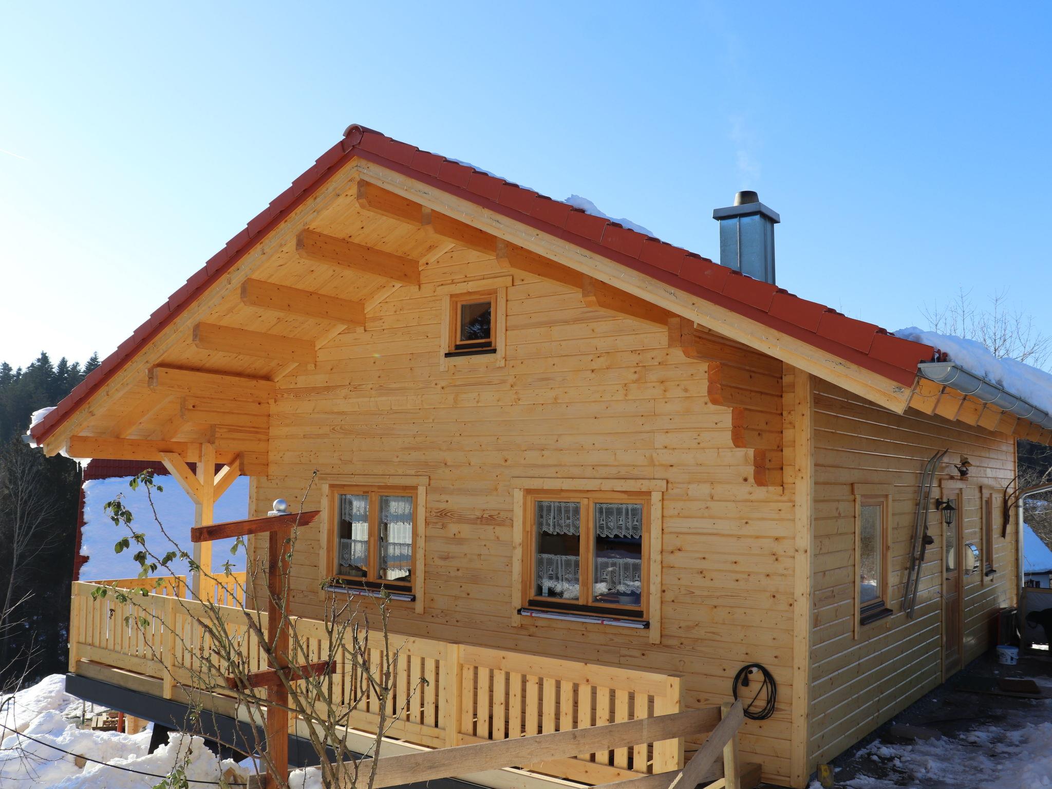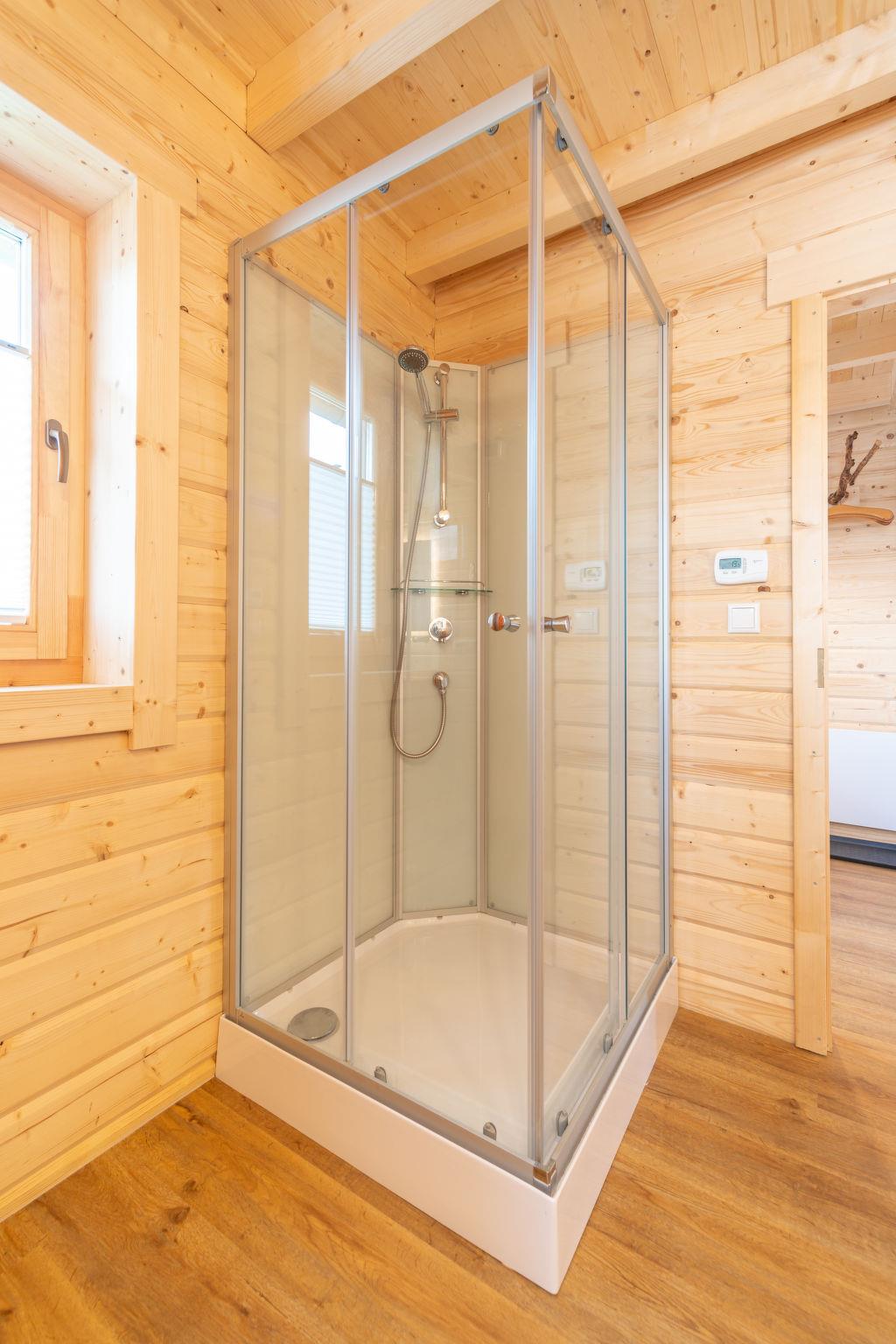 A family atmosphere in three comfortable log chalets. Largely self-sufficient energy supply with photovoltaic systems, infrared heating and Swedish stoves. Firewood comes from the property's small forest with a natural pond and stream. From approximately May 24, a chicken coop with outdoor enclosure will be available. Children can pet and feed the chickens and collect their own eggs. Small, child friendly resort, built in 2022. 3 houses in the residence. In the district of Mühlberg 2 km from the centre of Spiegelau, on a slope. For shared use: property 6'000 m2 with meadow, natural pond, swimming pool round (8 m diameter, seasonal availability: 15.May. - 30.Sep.). Patio. In the house: sauna, bicycle rental. Bread roll service. Shop 1 km, supermarket 2.5 km, bus stop "Palmberg" 1 km, railway station "Spiegelau" 3.5 km, outdoor swimming pool 2.5 km. Walking paths from the house 10 m, sled run 1 km. Nearby attractions: Nationalparkzentrum Neuschönau 17 km, Baumwipfelpfad 17 km, Passau 45 km. Well-known ski regions can easily be reached: Mitterfirmiansreut 31 km, Geißkopf 22 km, Großer Arber 37 km. Hiking paths: Nationalpark Bayerischer Wald 3 km. Please note: Loading and unloading of baggage is possible at the holiday house.