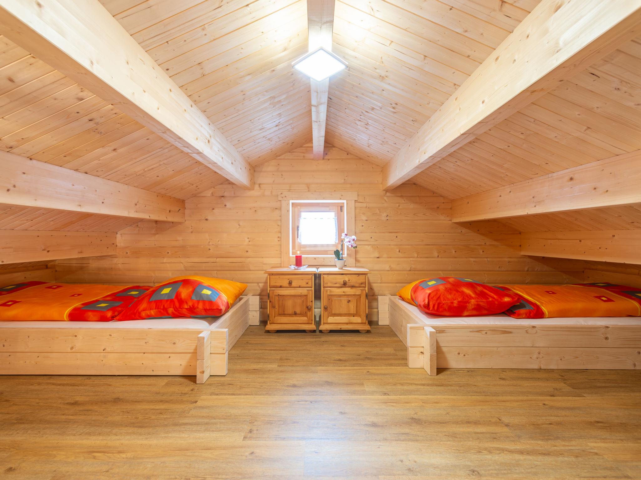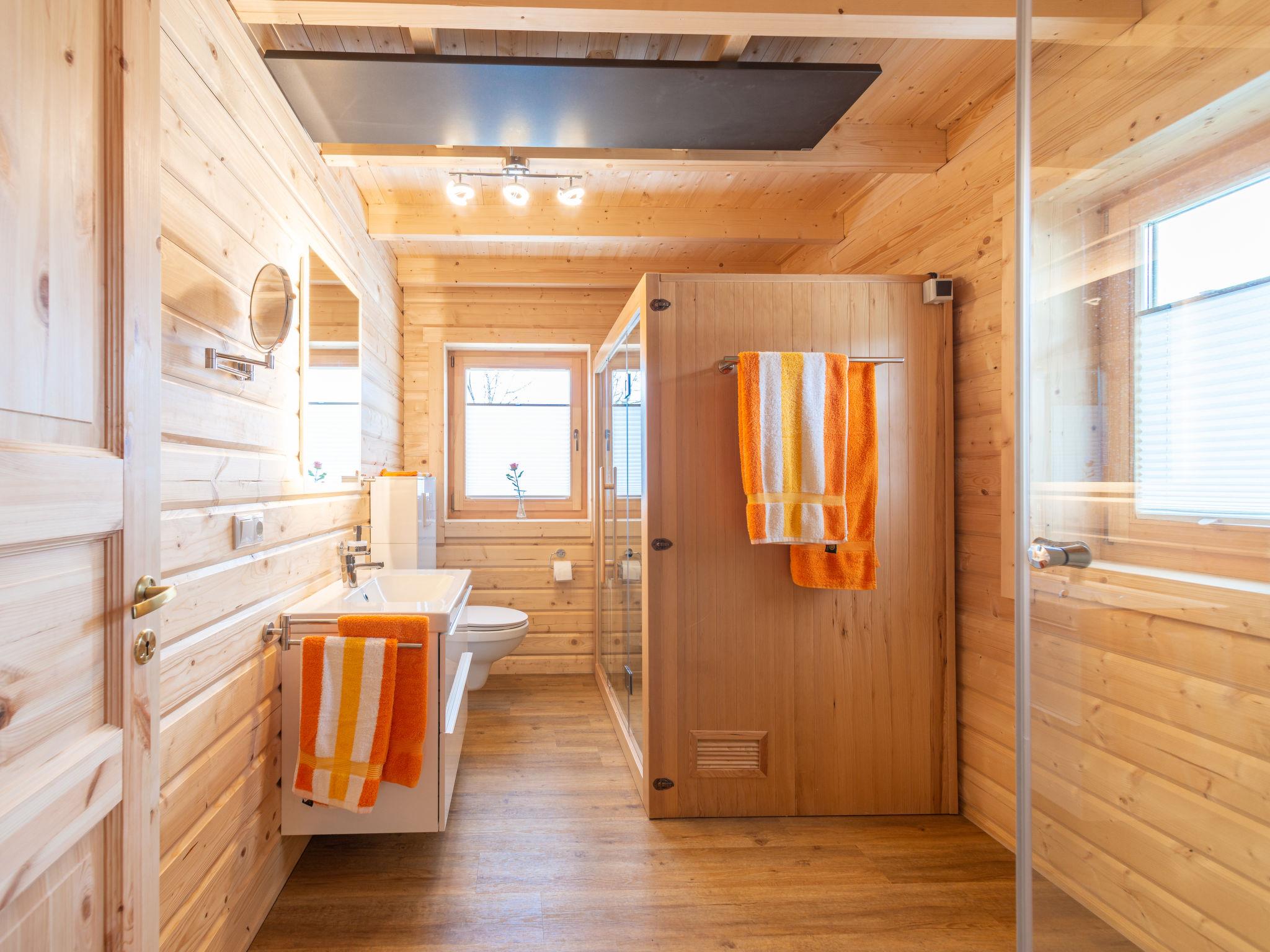 "Chalet Toni mit Sauna", 2-room chalet 80 m2. Comfortable and wooden furniture furnishings: living/dining room with Scandinavian wood stove, dining nook and satellite TV (flat screen). Exit to the balcony. 1 room with 1 double bed. Open kitchen (oven, dishwasher, 4 ceramic glass hob hotplates, toaster, kettle, microwave, electric coffee machine). Shower/WC, Sauna. Upper floor: (ladder) open gallery with 2 beds. Electric heating. Wooden floors. Balcony, south facing position and west facing position. Balcony furniture. Facilities: washing machine, baby cot. Internet (WiFi, free). Parking at the house. Please note: non-smoking house. Suitable for allergy sufferers, smoke alarm. Infrared heating panels in all rooms. E-bike rental. Instead of an enclosed bedroom, some sleeping areas are located in an open-plan area (gallery, alcove, etc.).