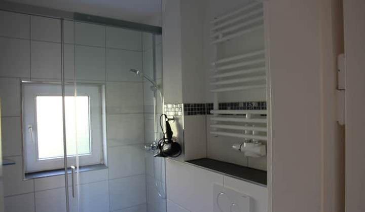 Im Bad, ausgestattet mit WC, Waschbecken und Dusche, stehen unseren Gästen ein Haartrockner, Handwaschseife, Toilettenpapier und Kosmetiktücher zur Verfügung.