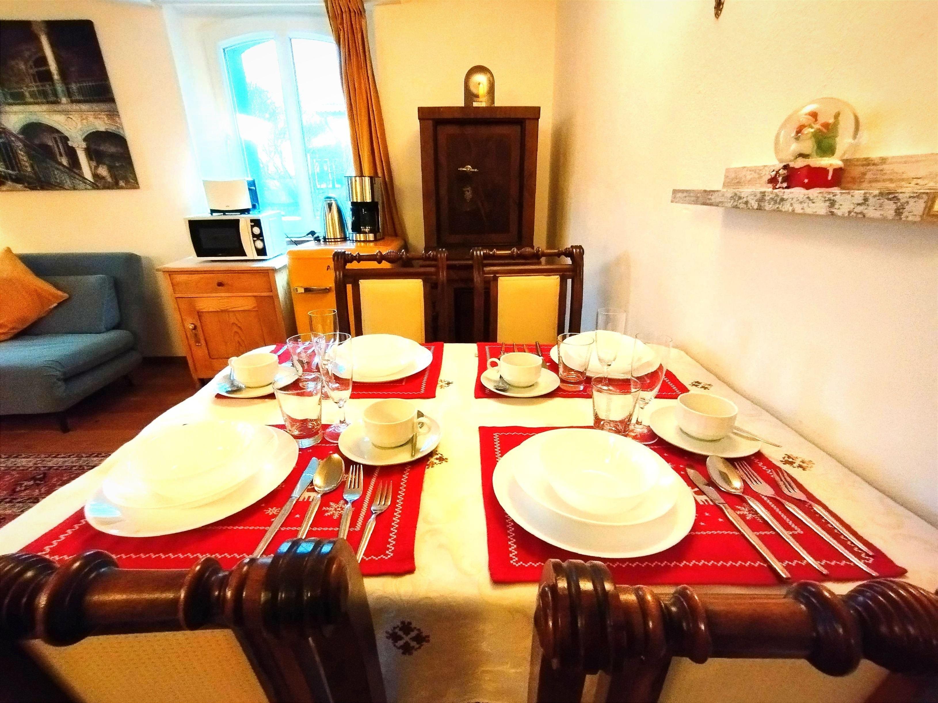 Geschirr und Besteck für 6 Erwachsene und 2 Kinder