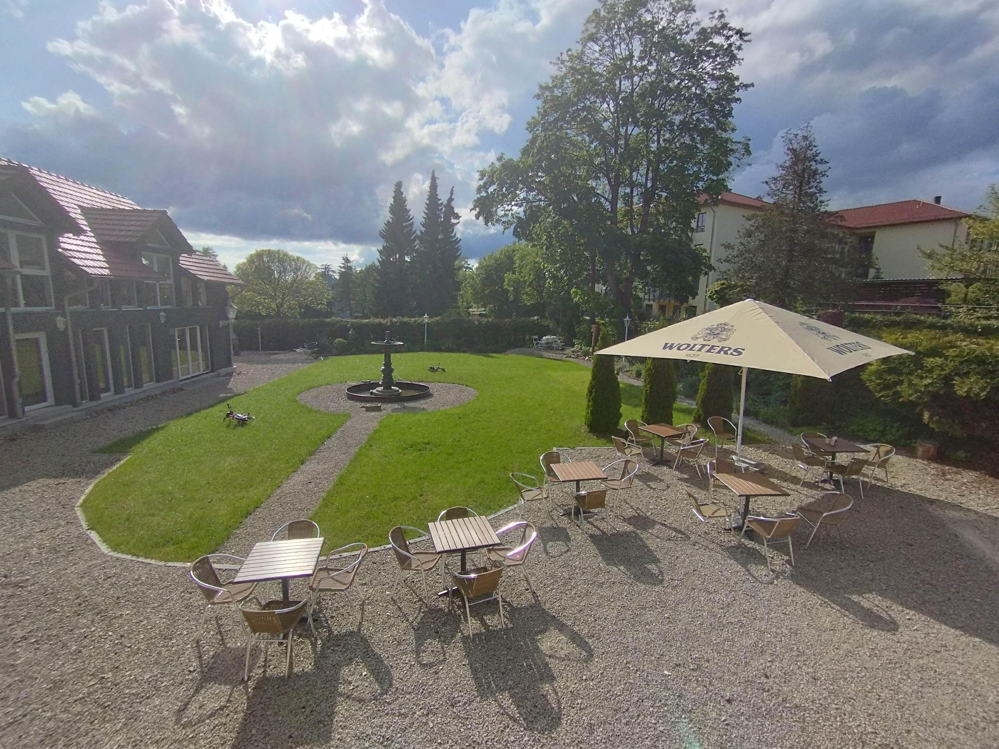 Ein schöner Garten mit Sitzgelegenheit mit Kohlegrill im Garten. Halbpension ist buchbar.