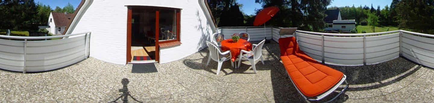 Der geschlossene 22qm Balkon bietet Ihnen einen geschützten Außenbereich. Hier genießen Sie sonnige oder schattige Stunden auf bequemen Sonnenliegen mit Sonnenschirm und modernen Gartenmöbeln – ein idealer Ort zum Lesen, Entspannen oder Speisen im Freien. Auch Kinder sind herzlich willkommen; sie finden hier ausreichend Bewegungsfreiraum und Beschäftigungsmöglichkeiten.