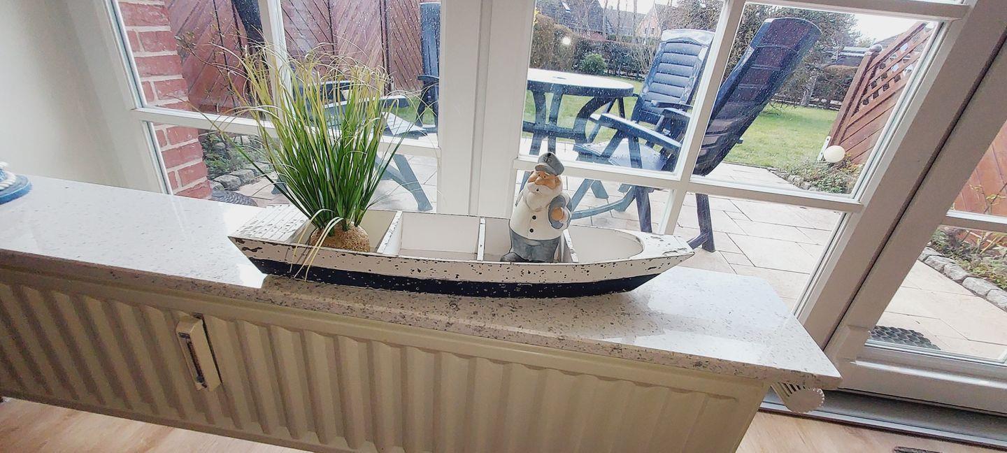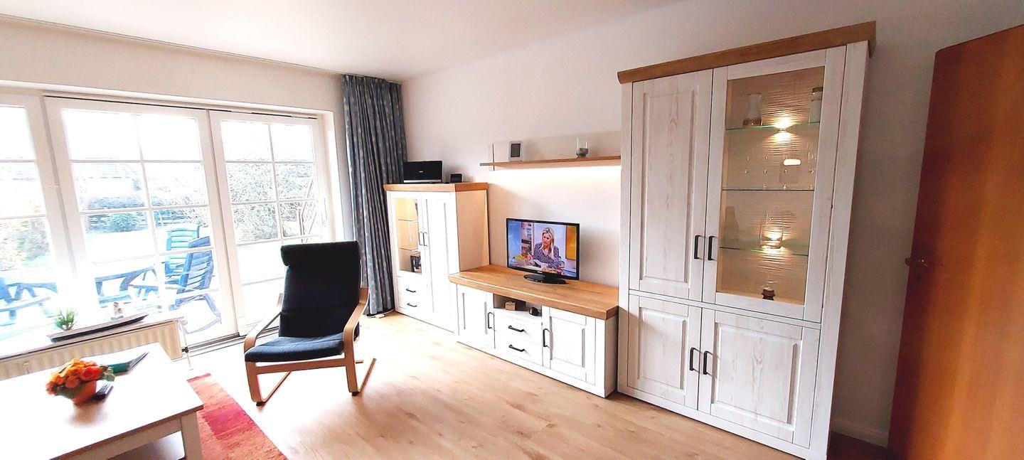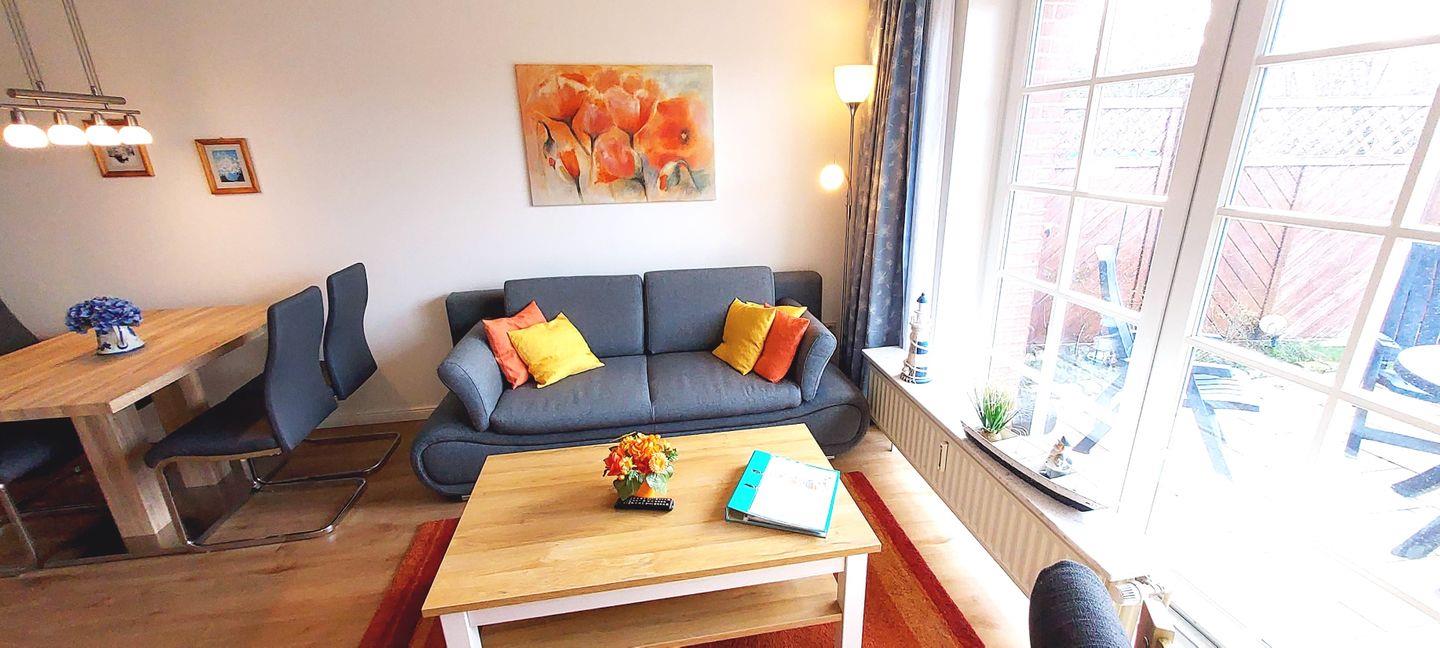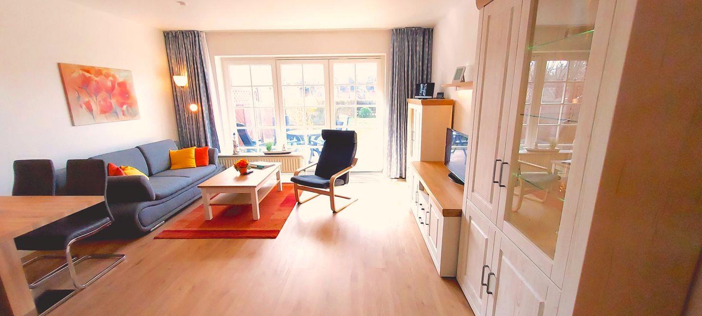 Ruhig aber dennoch zentral liegt im Ortsteil Dorf die Ferienwohnung Lütje Seute. Der Ortsteil Dorf mit vielen Restaurants, Cafés, Geschäften und Einkaufsmöglichkeiten für den täglichen Bedarf. Es befindet sich im Erdgeschoss des Hauses Halli Een und hat eine wunderschöne Südwest-Terrasse mit direktem Zugang zum schön zugewachsenen Garten.