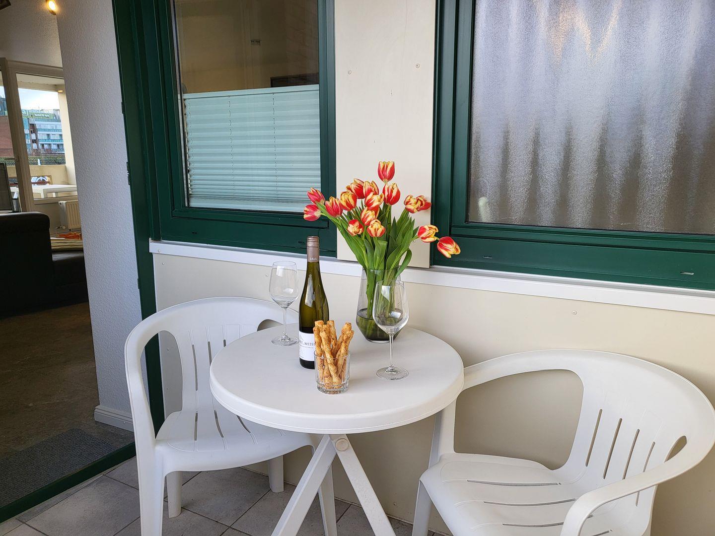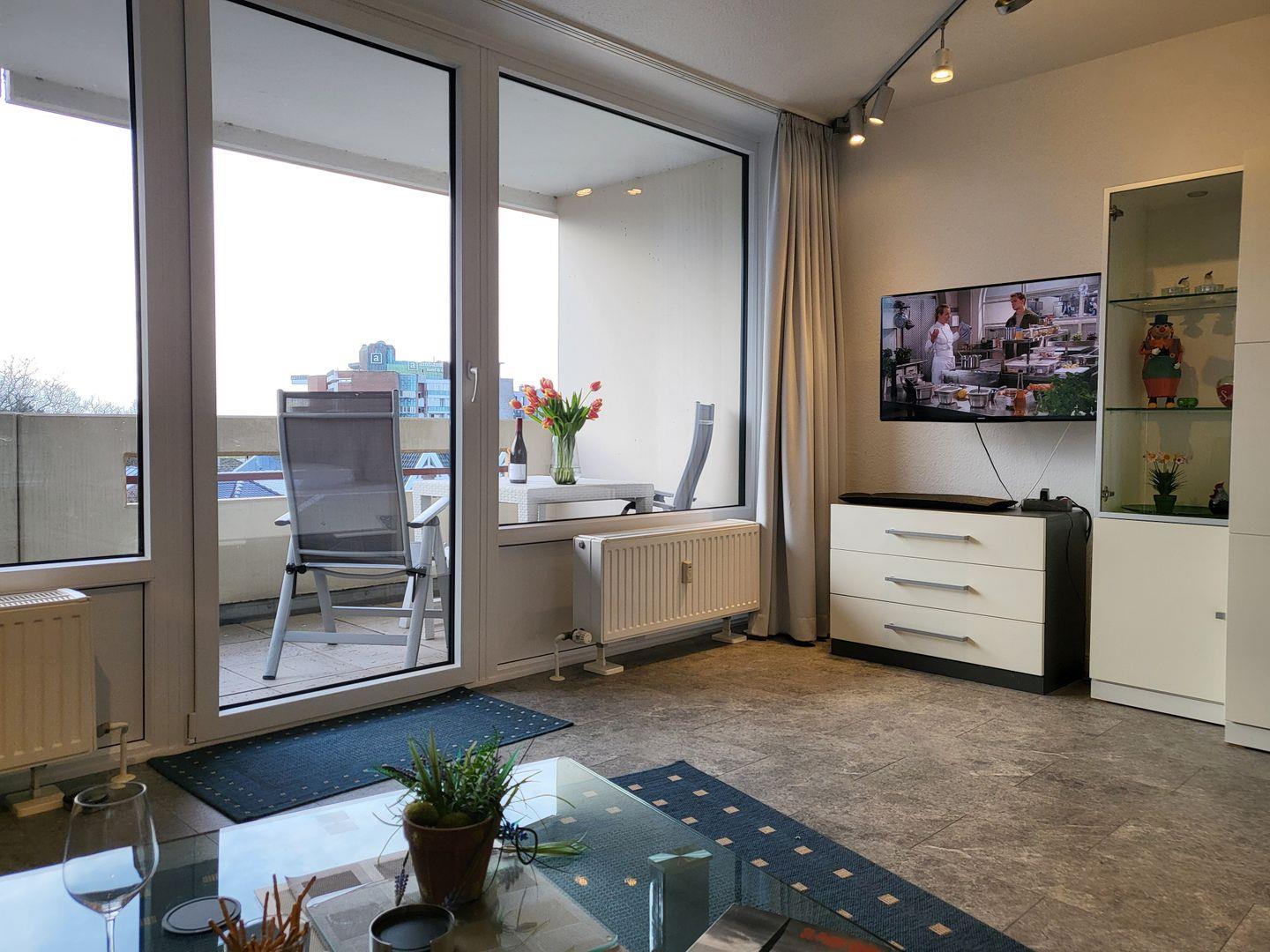 Zentrale, allergikerfreundliche 1 Zimmer Ferienwohnung im 2. OG für bis zu 2 Personen. Möblierter Balkon mit teilweisem Seeblick.