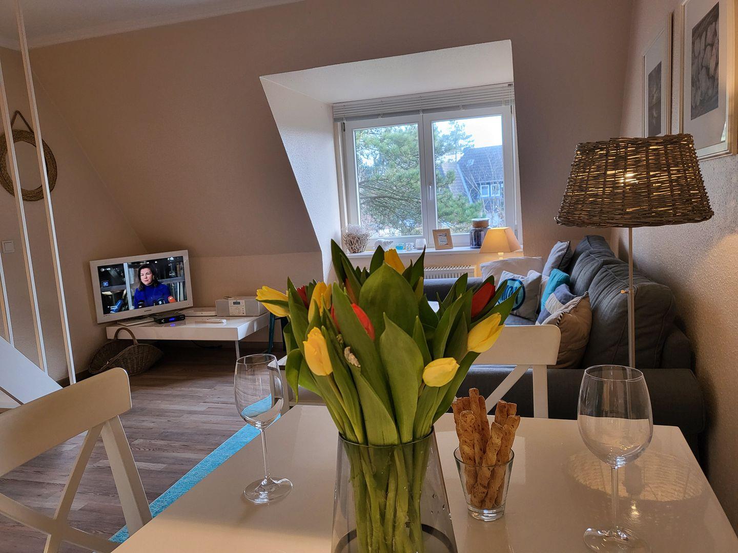 Zentral gelegene 2-Zimmer Ferienwohnung über zwei Ebenen unter Reetdach im Ortsteil Dorf.