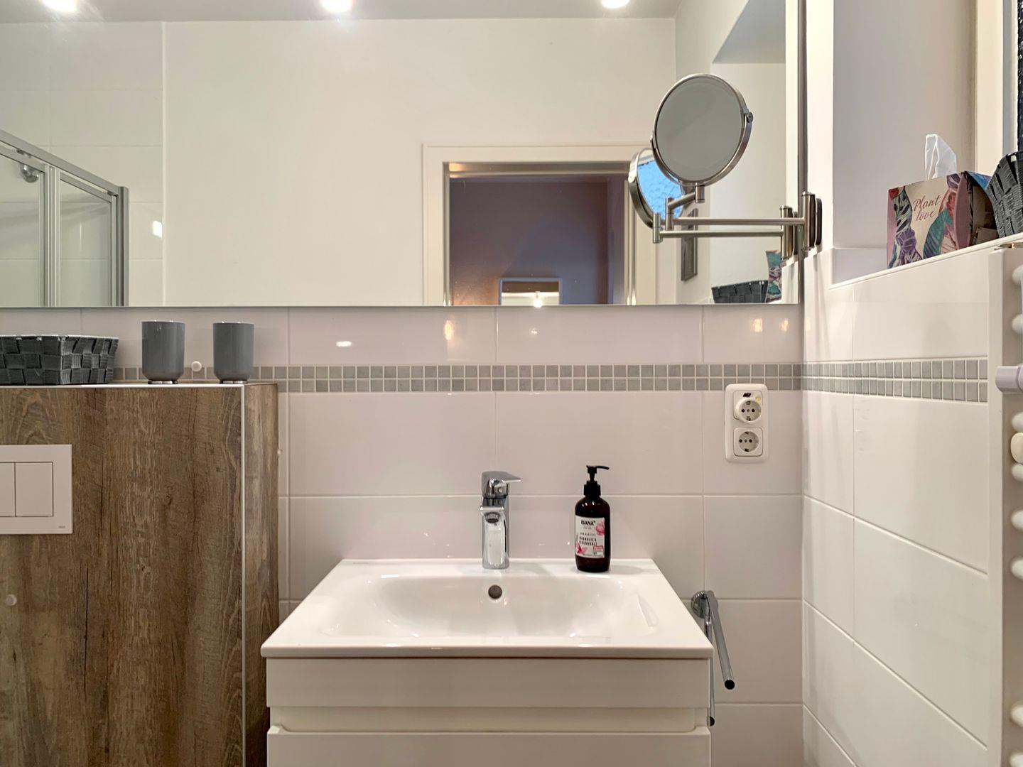 Zur Ferienwohnung gehört außerdem ein modernes Duschbad mit bodengleicher Dusche und WC.