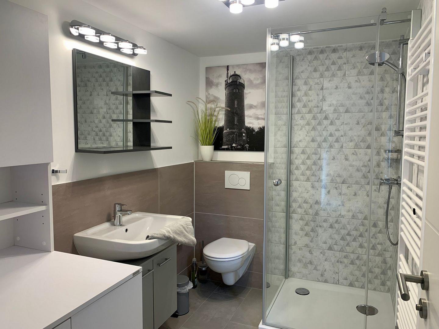 Das Ferienhaus im Ortsteil Böhl verfügt über zwei separate Schlafzimmer. Eines ist ausgestattet mit einem großen 180x200cm Doppelbett, im zweiten steht ein Einzelbett mit Bettschublade zur Verfügung. Ein helles Duschbad und WC gehört ebenfalls zur Ausstattung des Ferienhauses.