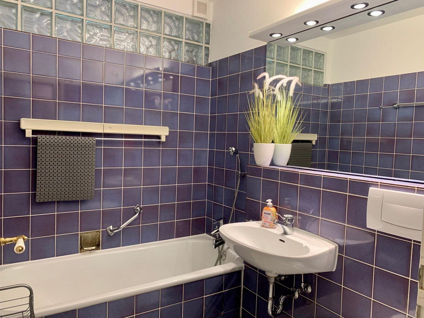 Duschbad mit WC sowie Badezimer Badewanne mit WC.