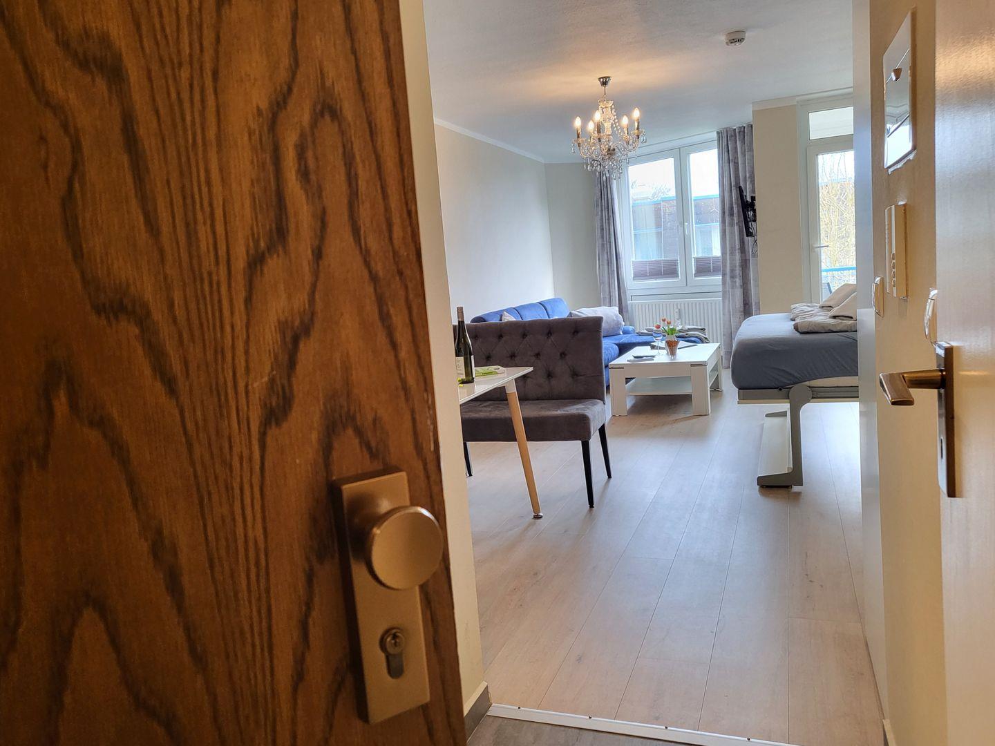 Sehr zentral und strandnah gelegenes 1 Zimmer-Apartment. für 2-4 Personen, kleiner Balkon, Wohnbereich mit