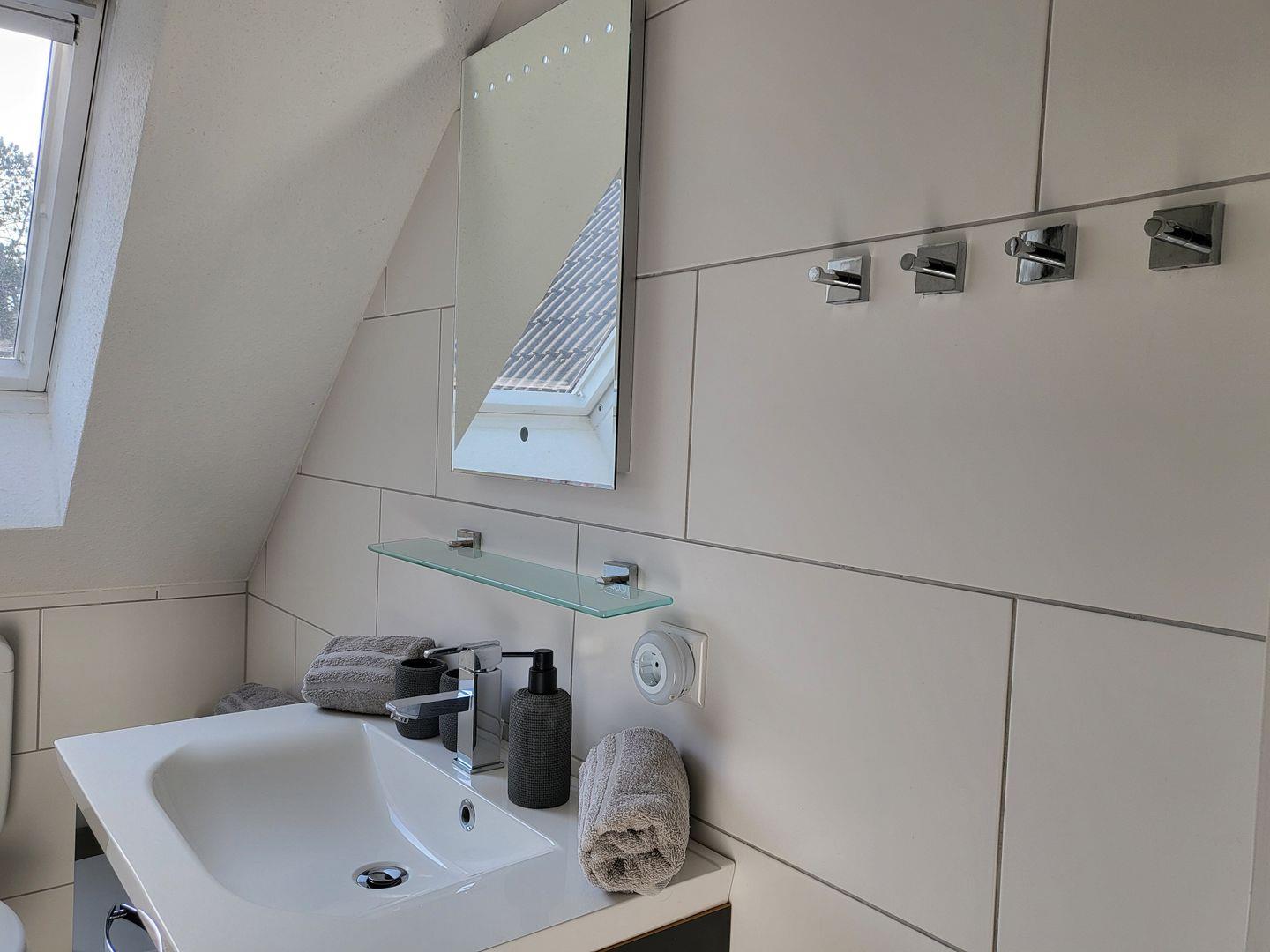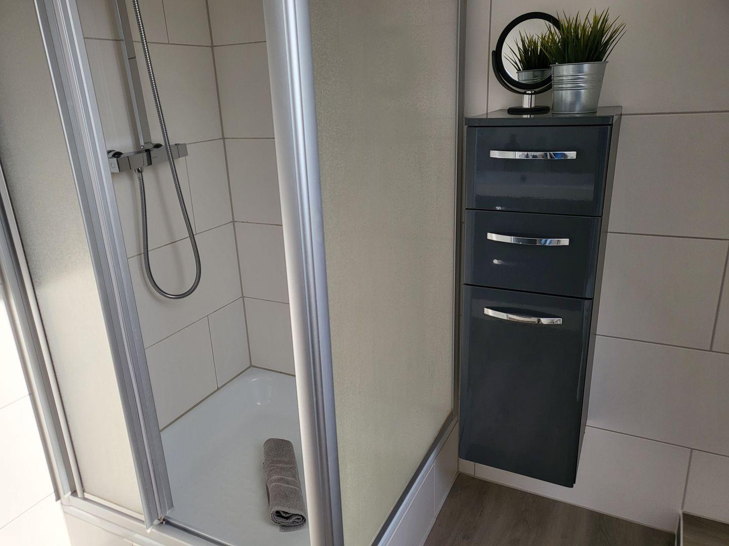 Zur Ferienwohnung gehört zudem ein modernes Duschbad mit WC.