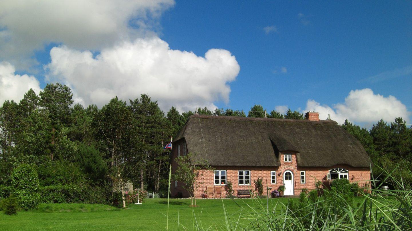 Wunderbar ruhig gelegen, zwischen den Ortsteilen Dorf und Böhl, liegt die moderne Doppelhaushälfte unter typisch nordfriesischem Reetdach.