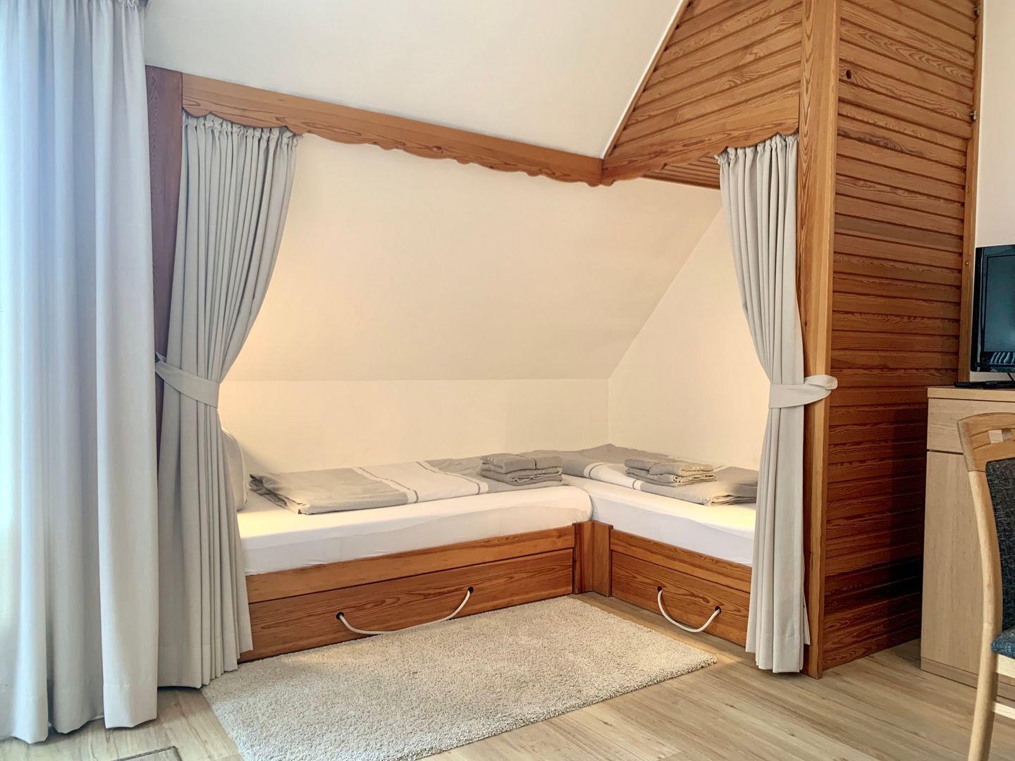 Im separaten Schlafzimmer stehen zwei Einzelbetten zur Verfügung.