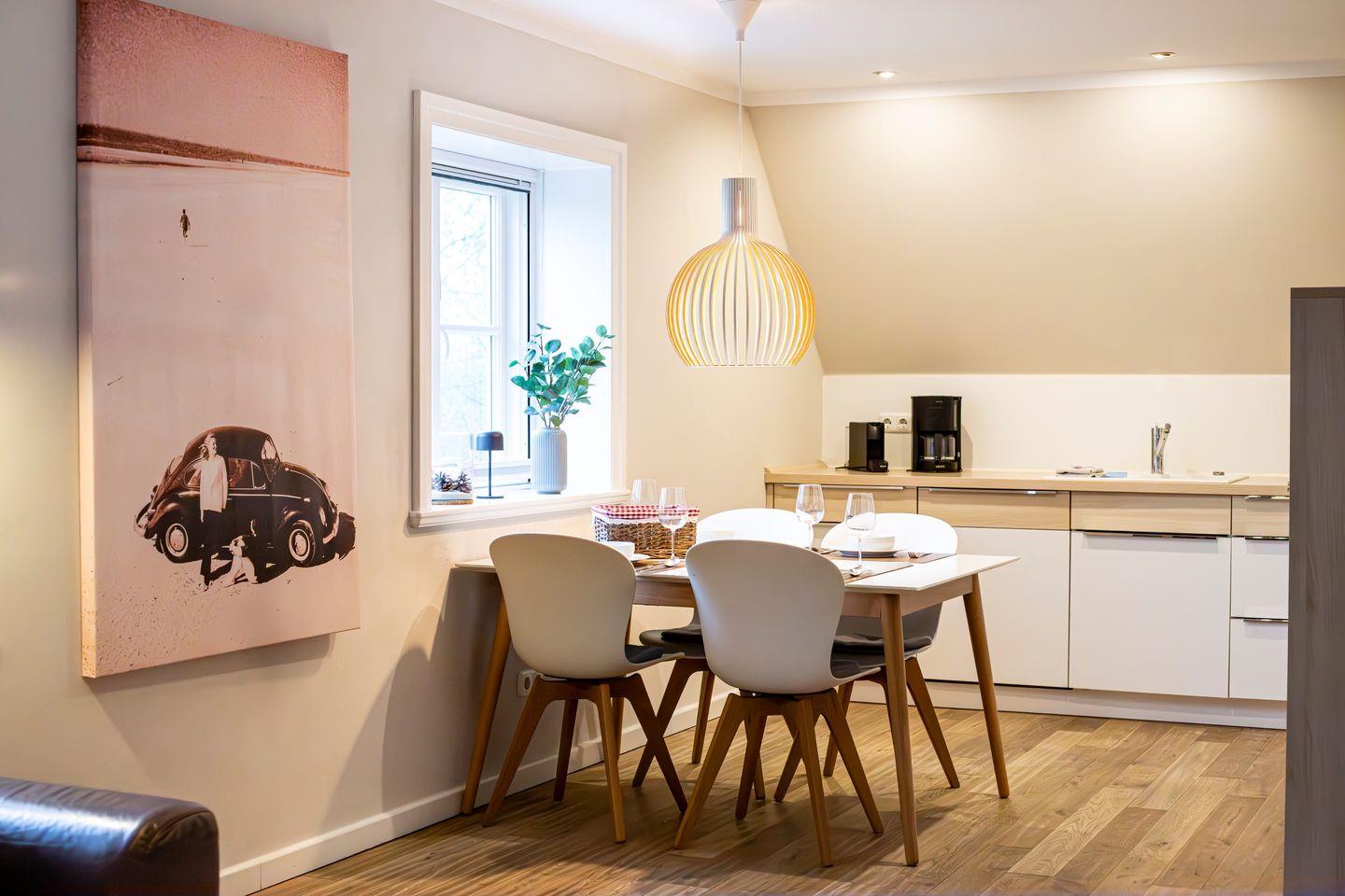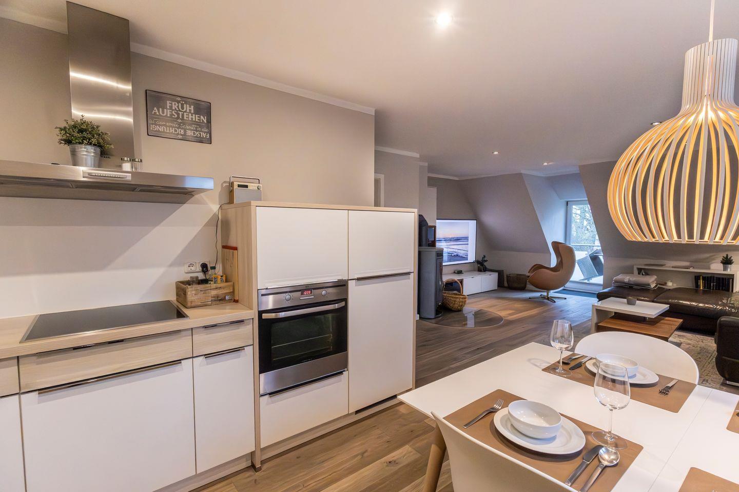 Das Appartement ist mit einer Fußbodenheizung ausgestattet. Zudem stehen im Außenbereich ein Freisitz und ein Strandkorb zur Verfügung.