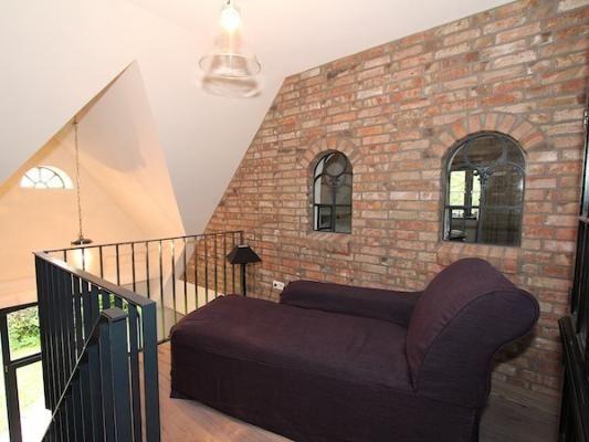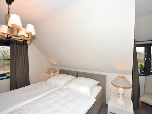 Vom Wohnraum führt eine Treppe zur Galerie, auf der eine bequeme Chaiselounge zum gemütlichen Verweilen einlädt. Die Terrasse in Westausrichtung verfügt über einen kleinen Gartenanteil und ist mit einem Strandkorb ausgestattet.