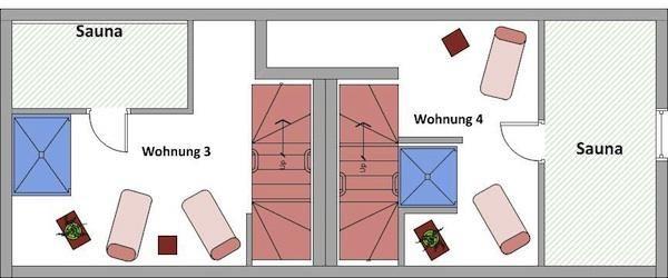 Dachgeschoss: eine Sauna mit separater Dusche und Ruhebereich