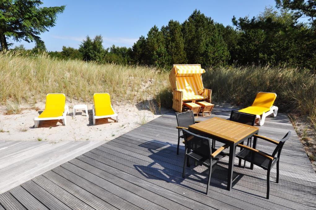 Die Küche der Firma "Leicht" ist mit erstklassigen Elektrogeräten ausgestattet, auf dem Sonnendeck stehen Gartenmöbel und ein Strandkorb bereit.