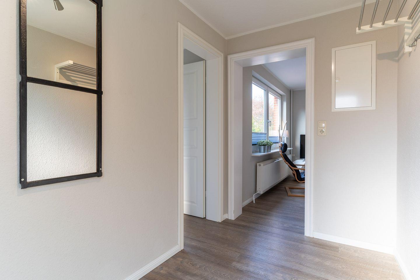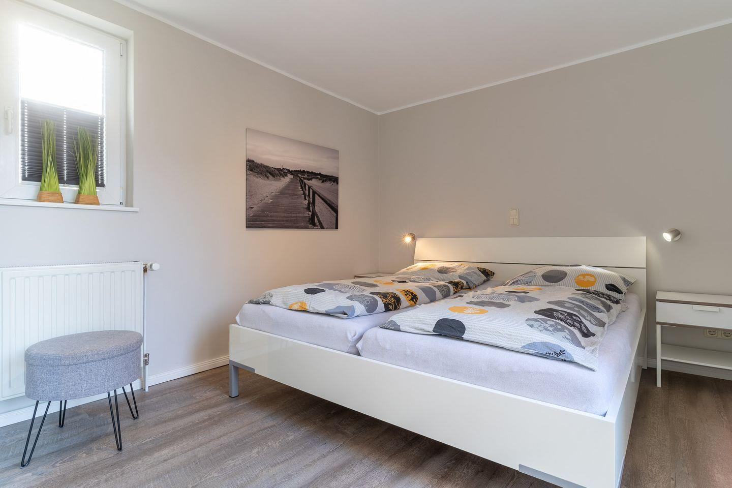 Das Ferienhaus liegt im idyllischen Ortsteil Dorf mit seinem kleinstädtischem Flair. Genießen Sie die zentrale Lage und trotzdem die absolute Ruhe. Den gemütlichen Dorfkern mit seinen Cafe's, Restaurants und Einkaufsmöglichkeiten erreichen Sie in wenigen Gehminuten und auch der Seedeich ist nur einen kleinen Spaziergang entfernt. Die Wohnung ist liebevoll eingerichtete und sehr gut ausgestattet für die schönsten Tage des Jahres. Wir freuen uns, Sie bald als GESTRANDET bei uns begrüßen zu dürfen. Im Interieur der Wohnung überzeugen hochwertige Materialien, Großzügigkeit und ein puristisch-modernes Ambiente. Der strahlend helle Wohn- und Essbereich mit der offenen Küche führt auf die großzügige Terrasse. Die Schlafräume - klare Linien, Modernität gepaart mit viel Behaglichkeit.