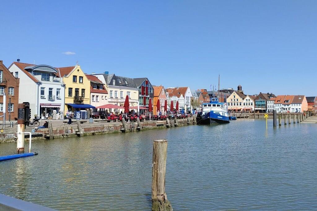 Im maritimen Style eingerichtete Fewo mit Dachloggia, ca.45 qm, Südwestlage, Gartenbenutzung. Ein Kleiderschrank als Raumteiler trennt den Wohnbereich vom Schlafbereich (Doppelbett 180/200 cm). Im separaten Schlaf- bzw. Kinderzimmer steht ein Doppelbett (140/200 cm). SAT-TV mit DVD. Kinderspielecke mit Velo-Spieltisch, Labyrinth, Tischflipper, Twister etc . Fenster mit Verdunkelungsrollo. Die Küchenzeile ist komplett ausgestattet: Kühlschrank mit Gefrierfach, Backofen, Herd mit Ceranfeld, Kaffeevollautomat, Kaffeemaschine, Wasserkocher, Toaster, Mikrowelle, ausreichend Geschirr, Gläser und Besteck. Duschbad mit Dachfenster, Reisefön ist vorhanden. Küche, Diele und Wohnraum sind offen gestaltet. 1 reservierter Pkw-Stellplatz. Waschmaschine gegen Gebühr in einem Gästewaschraum (2,50 Euro). Eigenes abschließbares Gartenhaus für Ihre Fahrräder. Gemeinschafts-Fahrradständer hinter dem Haus.