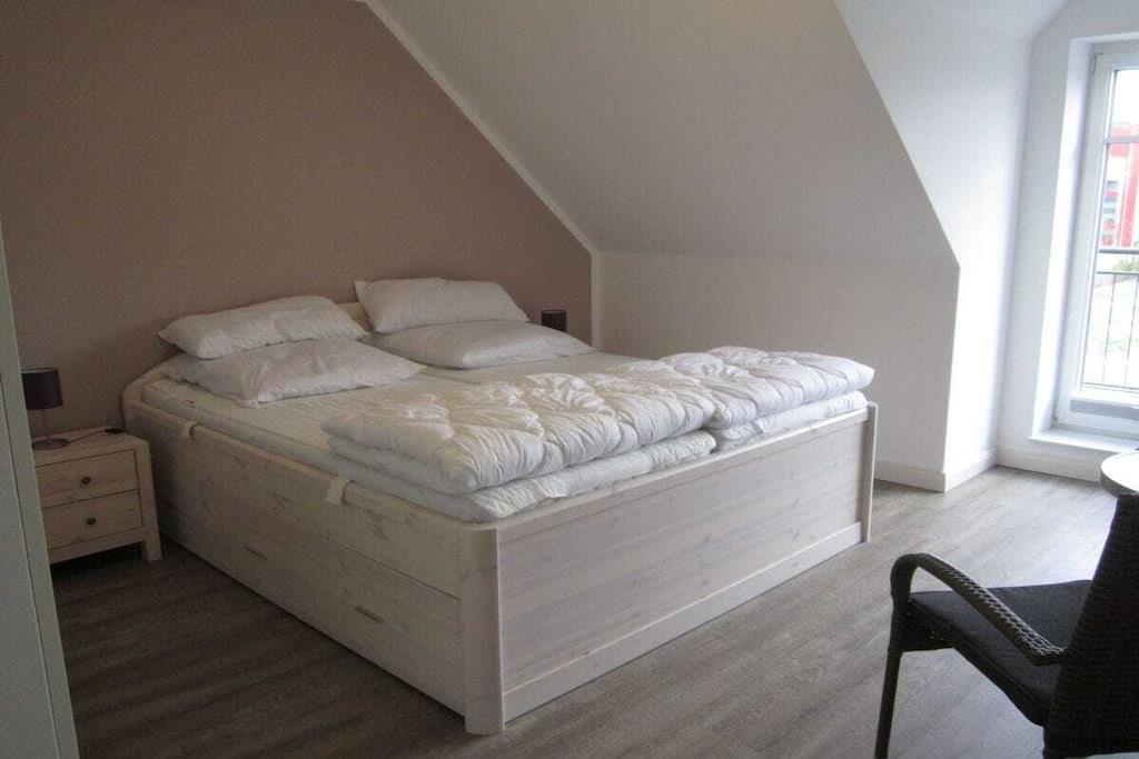 Stueetage: (Stue(, , Fjernsyn, kakkelovn, stereoanlæg, varme), spisestue(spisebord, varme), Køkken(, , tekøkken, spisebord, stereoanlæg, kogeplade, elkedel, brødrister, kaffemaskine, ovn, grill, mikrobølgeovn, opvaskemaskine , køleskab, fryser, varme), badeværelse(, toilet, bruser, håndvask, varme), pulterkammer(, tørretumbler, vaskemaskine, strygebræt, strygejern, tørreskab)) På 2. etage: (soveværelse(, enkeltseng, enkeltseng, Fjernsyn)) Loft: (soveværelse(, dobbeltseng, varme), soveværelse(, enkeltseng, enkeltseng, varme), soveværelse(, dobbeltseng, varme, barneseng), badeværelse(, toilet, bruser, håndvask, varme, føntørrer)) , loungerum(sauna, hottub), Internetadgang, Internetadgang, balkon, terrasse(, Strand, grill, havemøbler), parkering