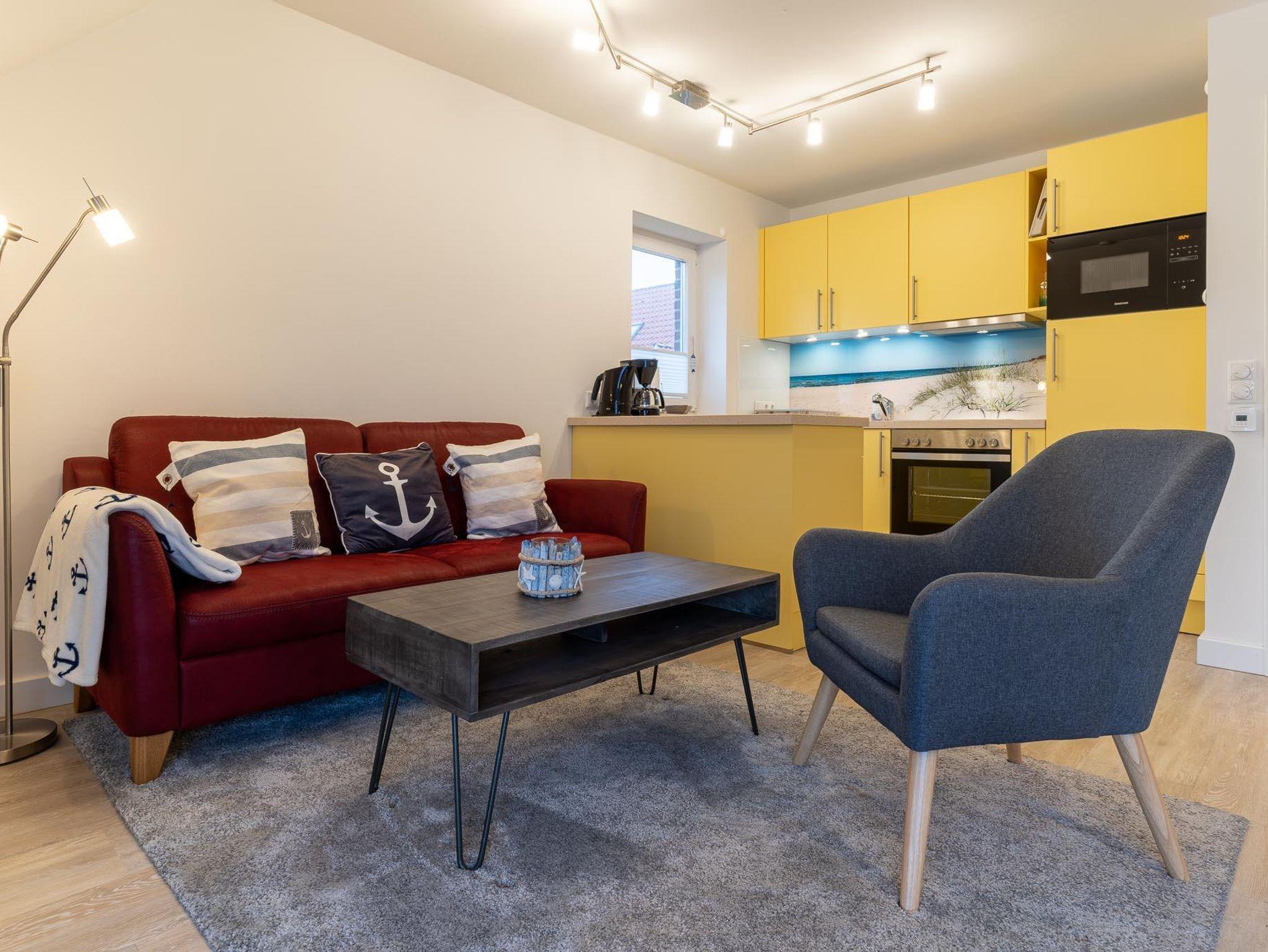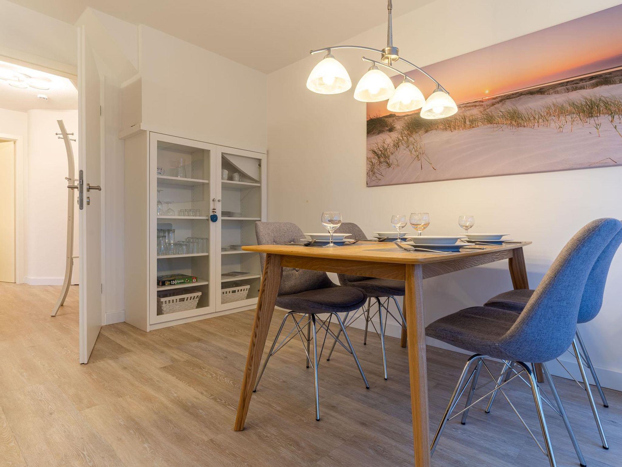 Diese ganz neu renovierte Maisonette-Wohnung liegt im 1. OG eines überschaubaren Appartementhauses in ruhiger Lage am Ortsrand von Sankt Peter-Ording. Man spürt direkt, dass auf Liebe zum Detail geachtet wurde und ein Gefühl von Behaglichkeit ausstrahlt. Hier finden Sie genau die Erholung von Ihrem stressigen Alltag, ohne auf Komfort zu verzichten. Der Blick vom Balkon in Westlage über das weite Marschland Eiderstedts lädt zum Verweilen ein auf gemütlichen Balkonmöbeln für 4 Personen. Hier sperren Sie den Trubel komplett aus!