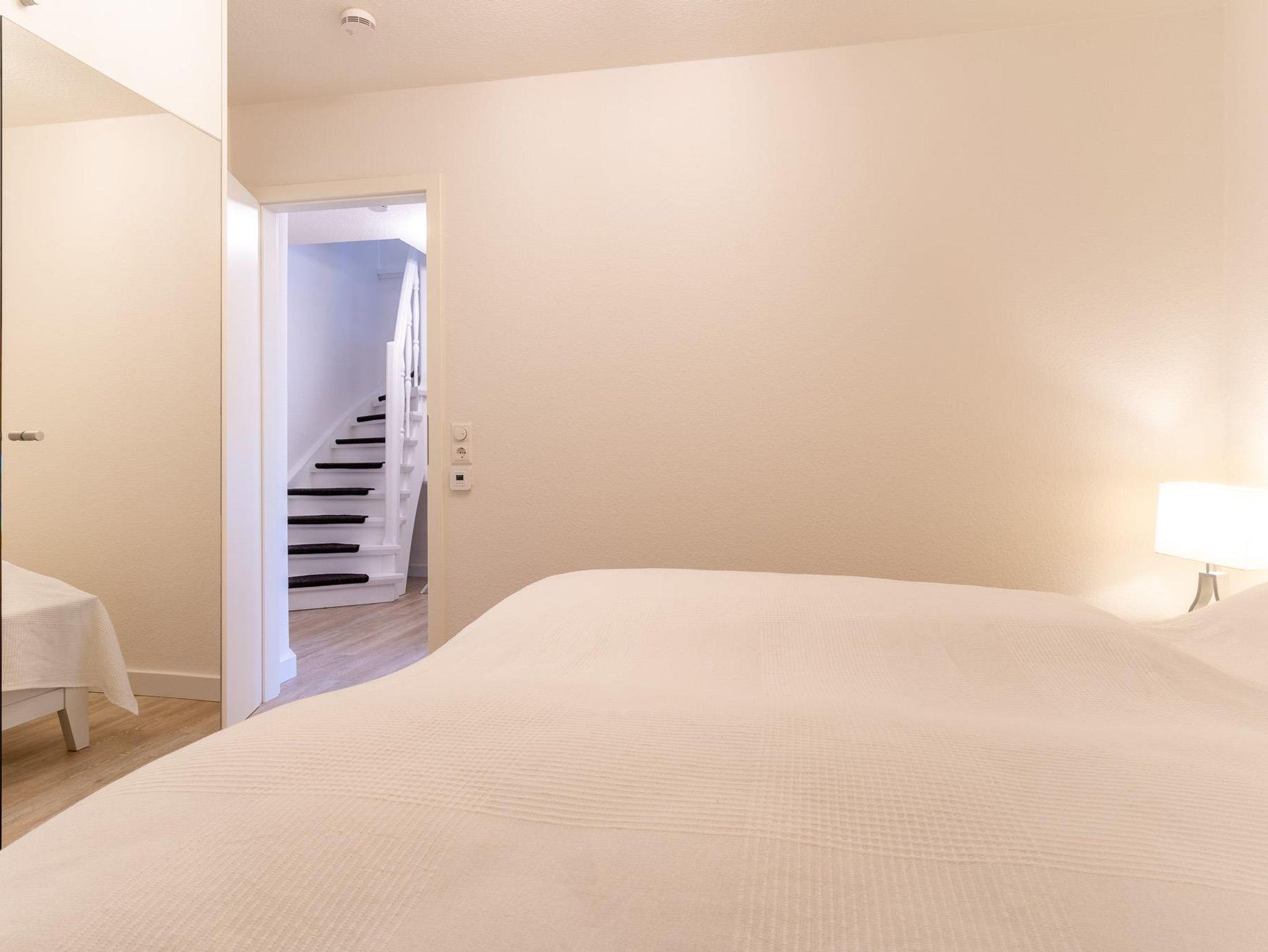 Der Balkon ist von der geräumigen Wohnküche (mit Ledersofa und LED-TV) aus zu erreichen. Die Küche ist selbstverständlich auf dem technisch neuesten Stand, voll ausgestattet mit Backofen, Mikrowelle und Kühl-/ Gefrierkombi. Das untere Schlafzimmer hat ein 1,80 x 2 m Doppelbett und Einbauschränke mit viel Stauraum. Das obere großzügige Schlafzimmer (Maisonette) ist über eine Treppe vom Flur erreichbar, ist lichtdurchflutet und verfügt über 2 Einzelbetten 0,90 x 2 m, eine Sitzecke und Einbauschränke. Im Tageslicht-Dusch-Bad befindet sich auch die praktische Waschmaschine und ein Fön. Alle Räume sind mit Insektenschutz ausgestattet. In dieser Unterkunft sind Bettwäsche und Handtücher inklusive. W-Lan ist kostenfrei. Hochstuhl (10,-€) und Kinderbett (15,-€) können auf Anfrage gestellt werden. Hunde (max. 2) sind herzlich willkommen und kosten 9,-/Nacht.