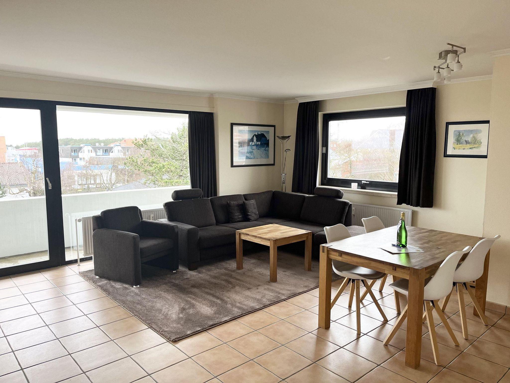 Schlafraum mit 2 Einzelbetten, Wohn-Schlafraum mit 2 Wandschrankbetten, Fußboden gefliest, Sitzecke, Essecke, Küchenzeile mit Mikrowelle, Dusche/WC, Durchwahltelefon, Kabel-TV, Balkon, PKW-Platz Nr. 53, Aufzug im Haus und Fahrradkeller.