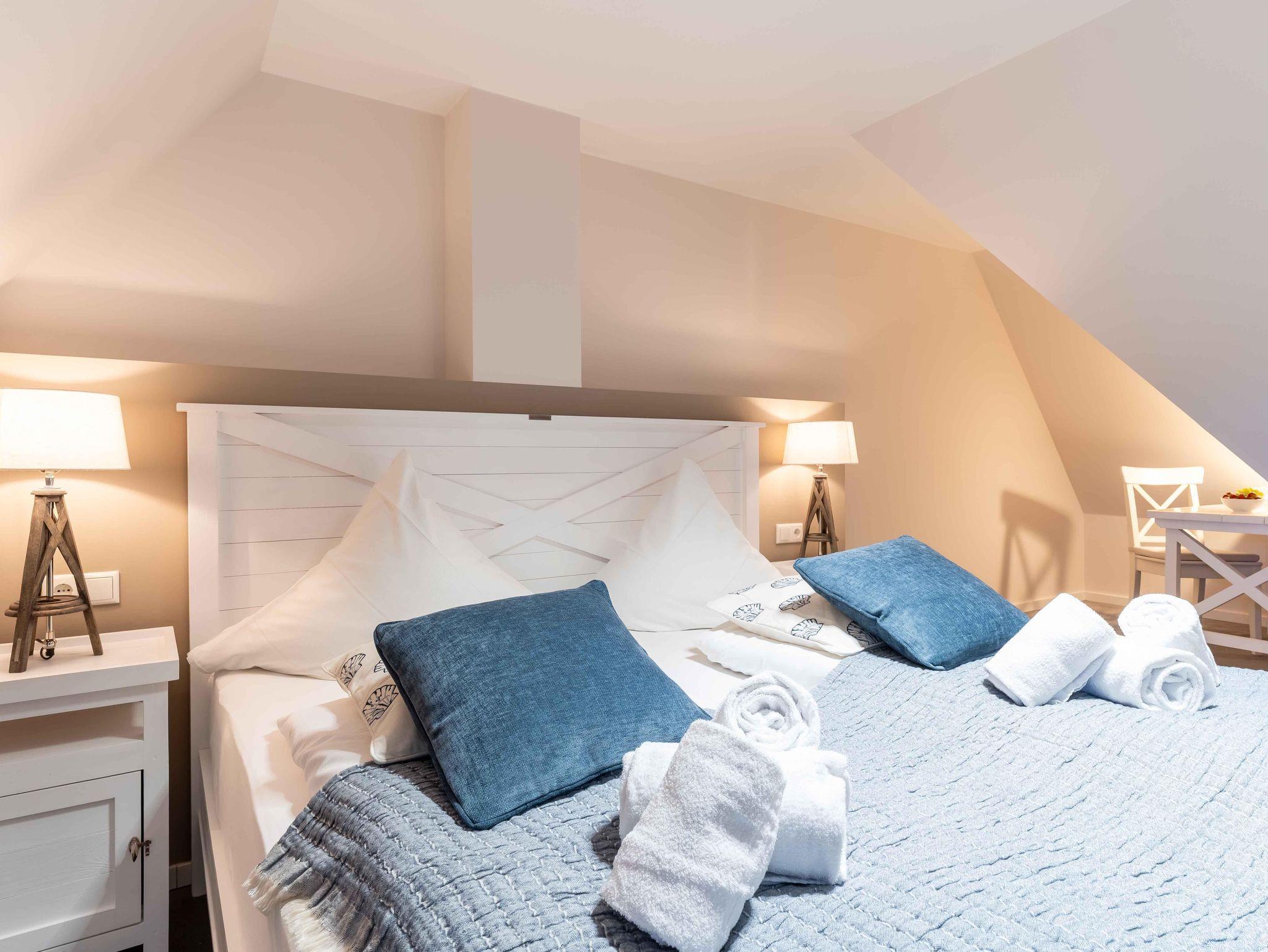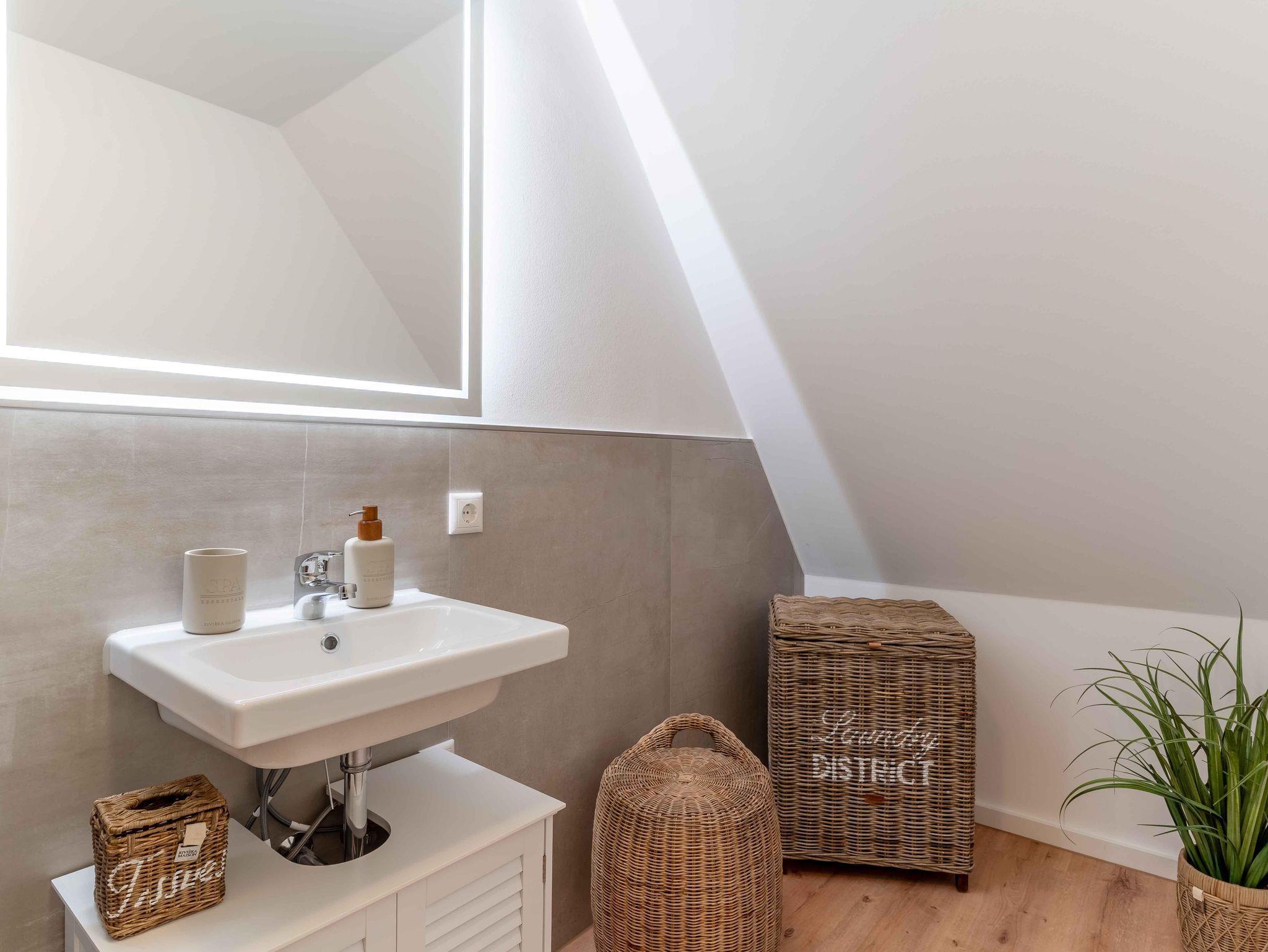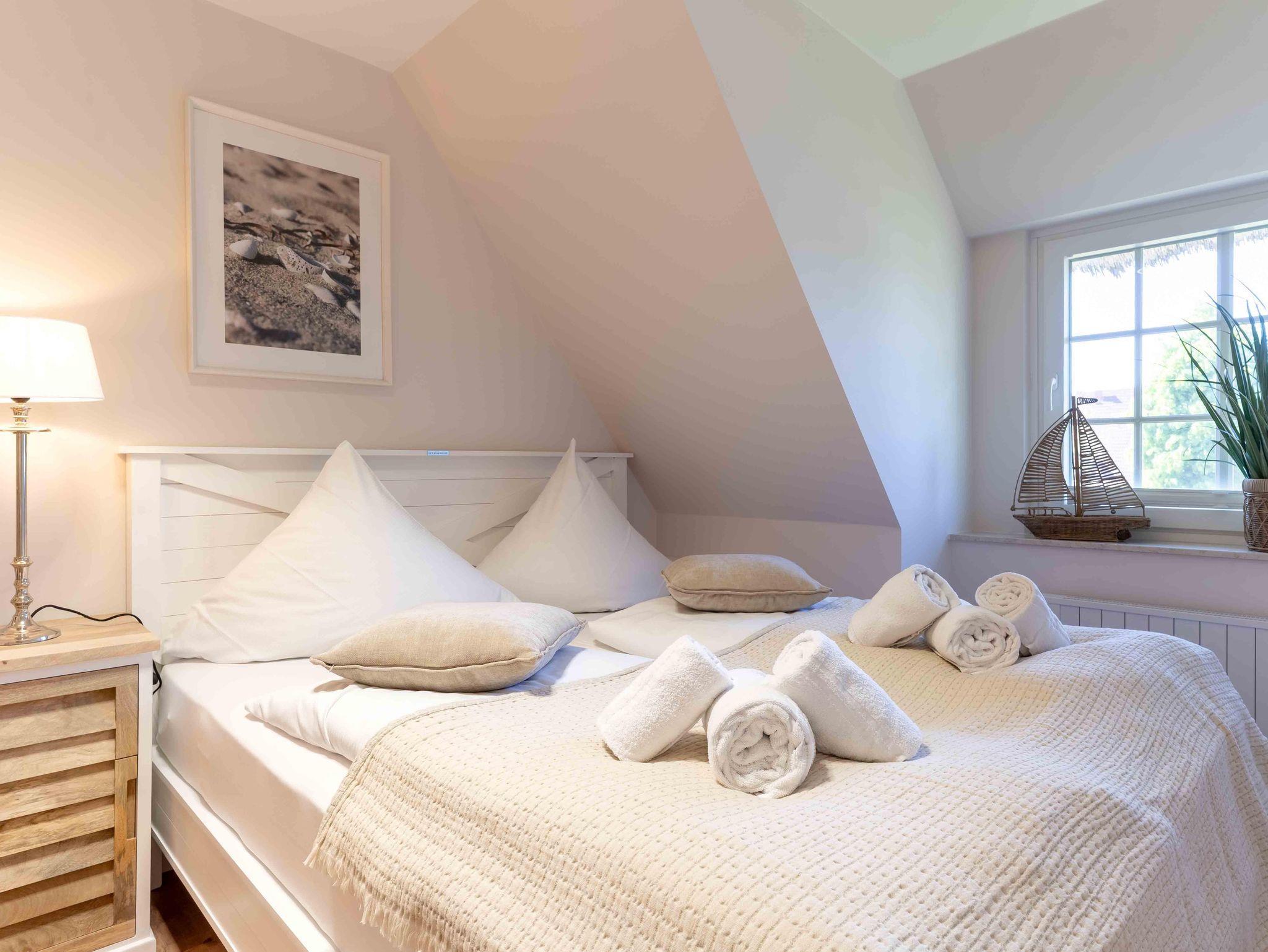 Die geräumige 3-Zimmer-Ferienwohnung Wattläufer Nr. 09 geht mit ihren 80 m² über die 1. Etage bis in das Dachgeschoss. Bis zu 4 Gäste können in dieser geschmackvoll eingerichteten Wohnung ihren Urlaub schön verbringen. Vom stillvollen und gemütlichen Wohnbereich treten sie heraus auf den sonnigen Süd-Balkon. Die schicke Küchenzeile mit modernem Cerankochfeld, Backofen verlockt zum Kochen. Sie können hier zwischen 2 Schlafzimmern mit je einem Doppelbett wählen. Es gibt ein schickes neues Bad im 1. OG und ein extra WC im DG.