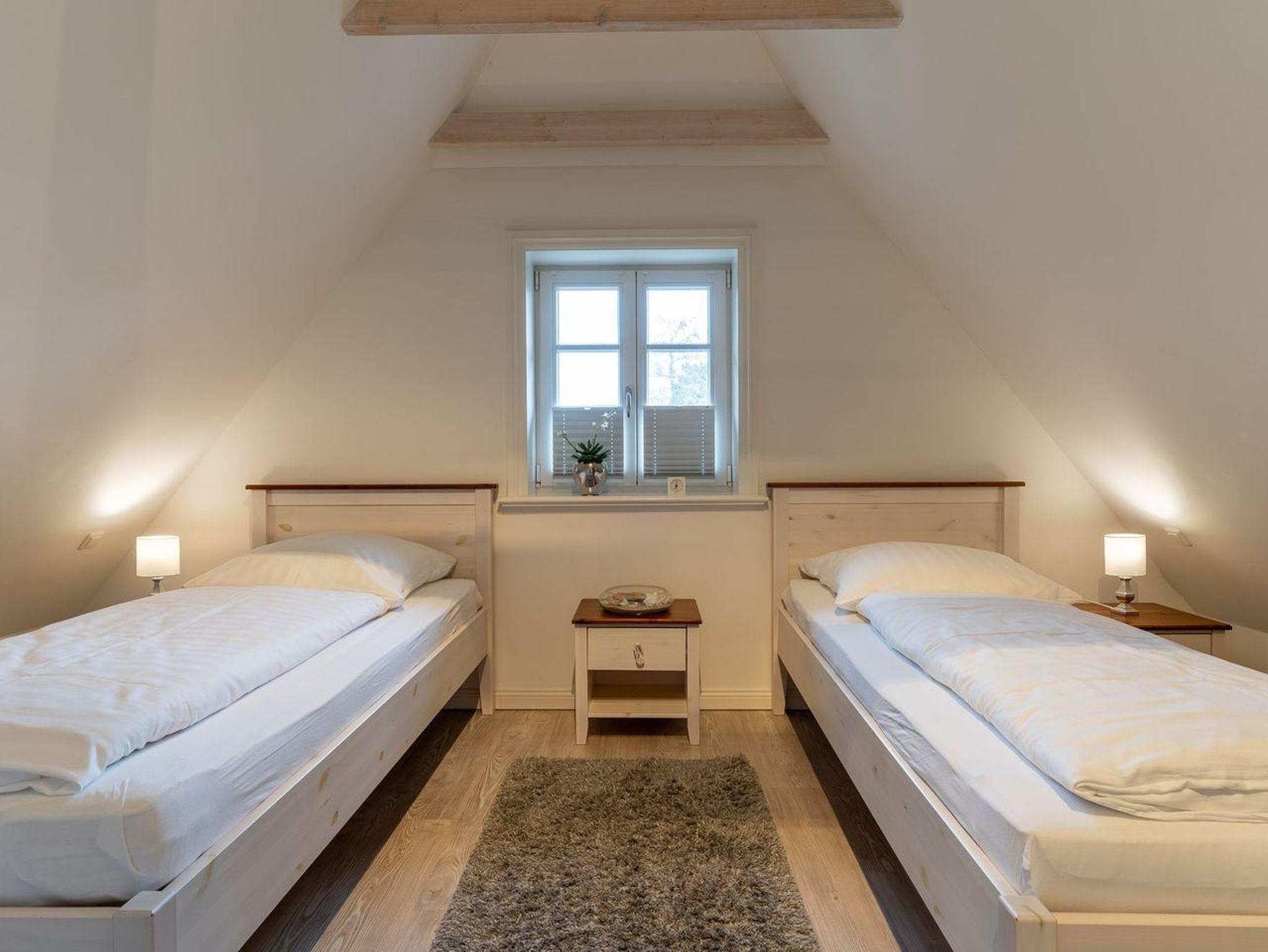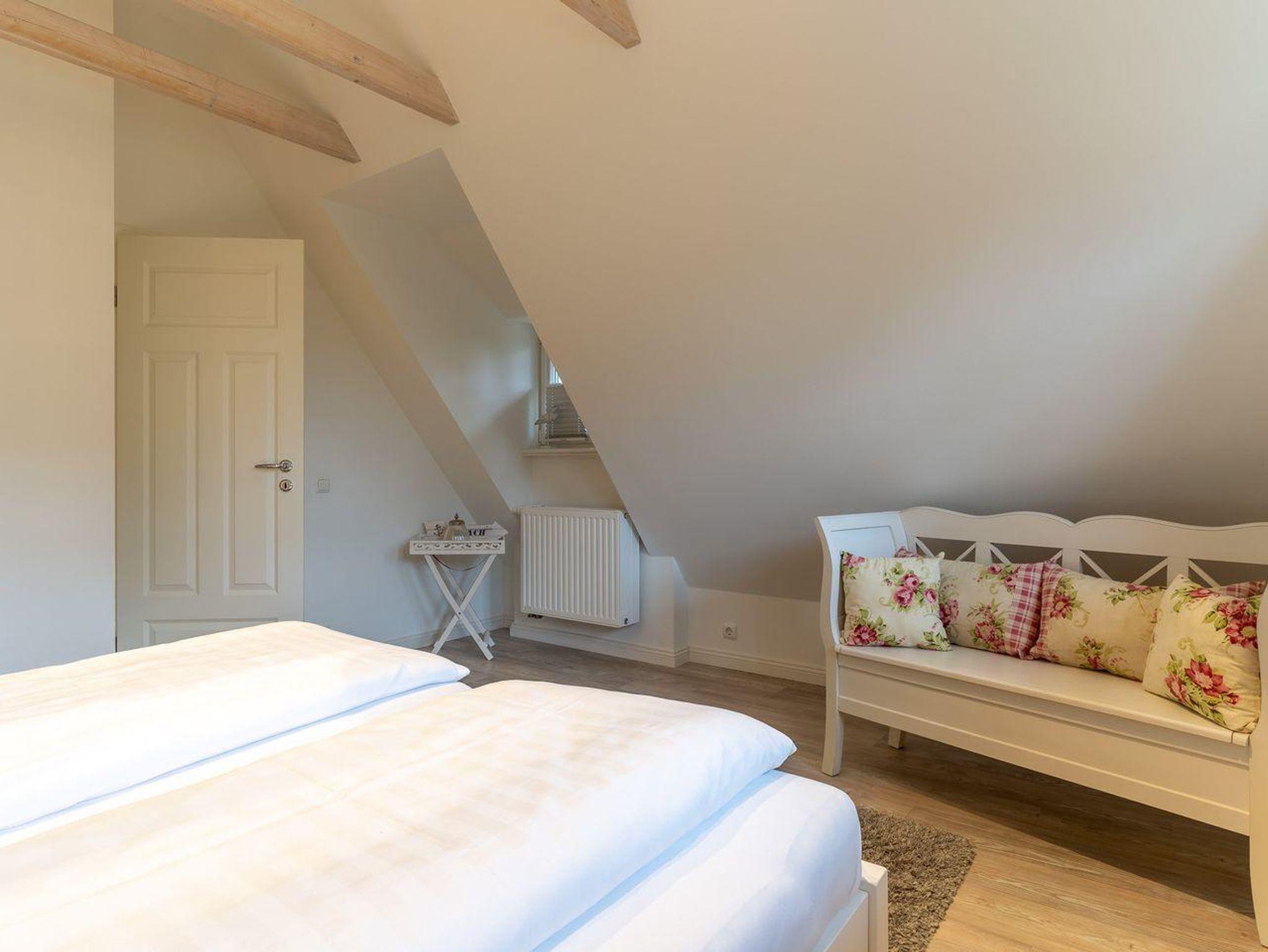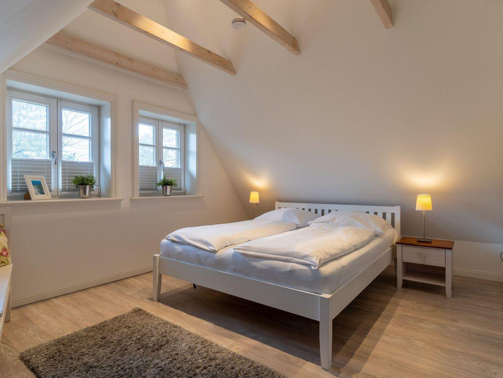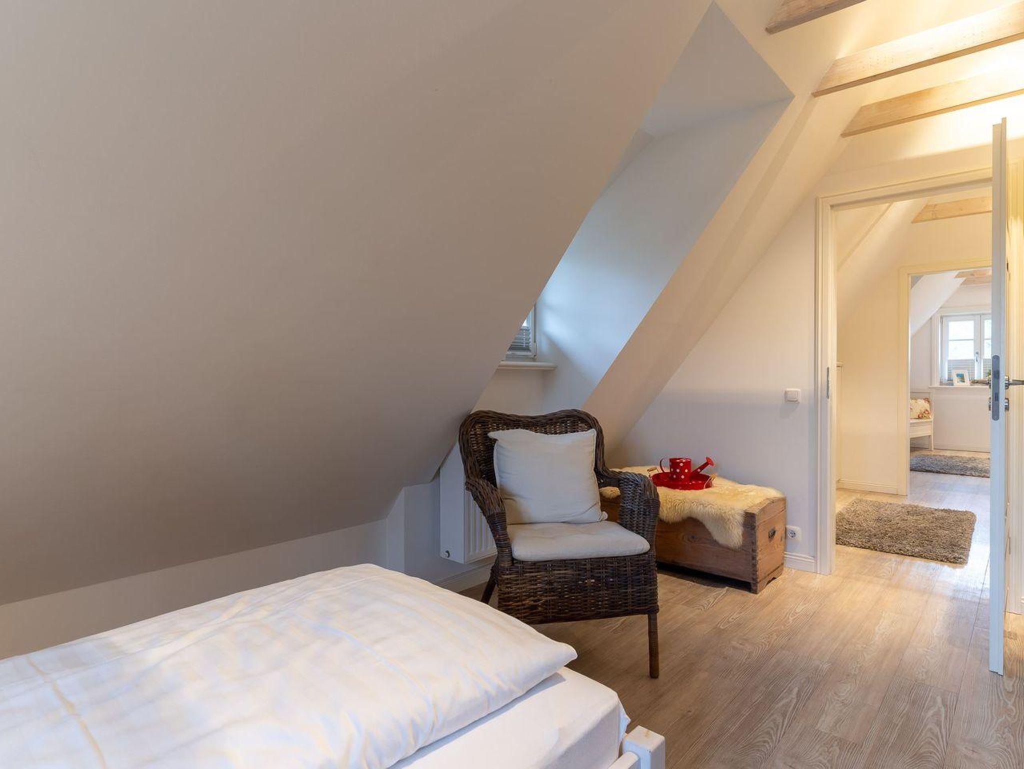 Über den geräumigen Flur gelangen Sie über eine wunderschöne Holztreppe in das Obergeschoss. Hier sind zwei weitere gemütliche Schlafzimmer. Fallen lassen und abschalten.