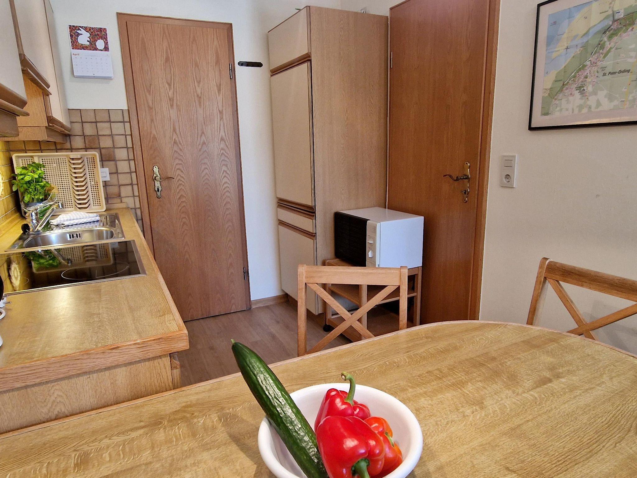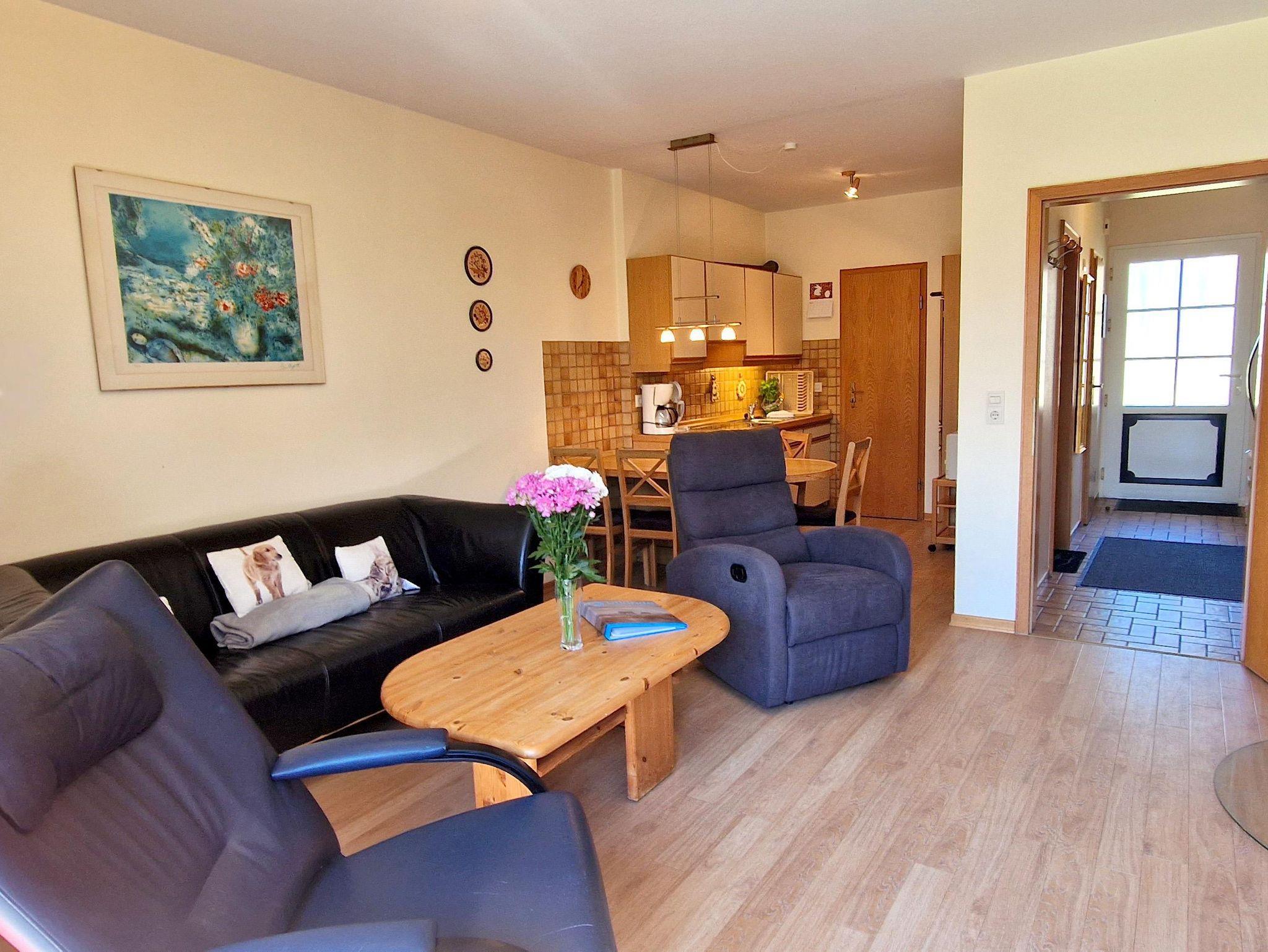 WohnzimmerCouch, Couchtisch, 2 Sessel, Stuhl, Stehlampe, TV-Vitrinenschrank, Sat-TV, DVD-Player, Videorecorder, Stereoanlage mit CD-Player, Kamin nutzbar, Esstisch, 4 Stühle, Küchenzeile, 4 Plattenherd mit Backofen, Dunstabzugshaube, Kühlschrank, Mikrowelle, Kaffeemaschine, Wasserkocher, Eierkocher, Toaster, Rollwagen, Geschirr, Kochtöpfe