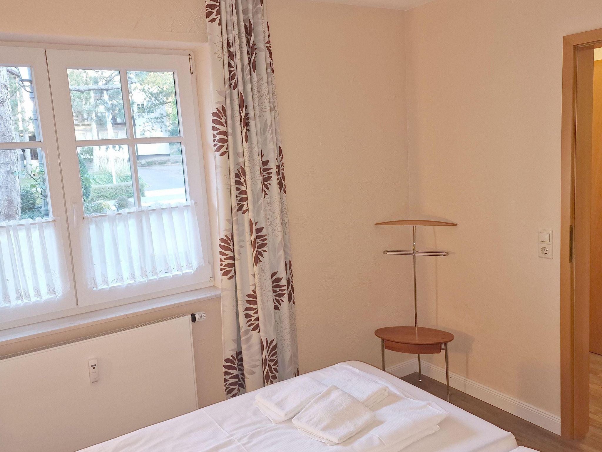 Schlafzimmer: Doppelbett 2,00 x 1,80 m, 2 Nachttische, 2 verdeckte Ablagen, Stuhl, Herrendiener