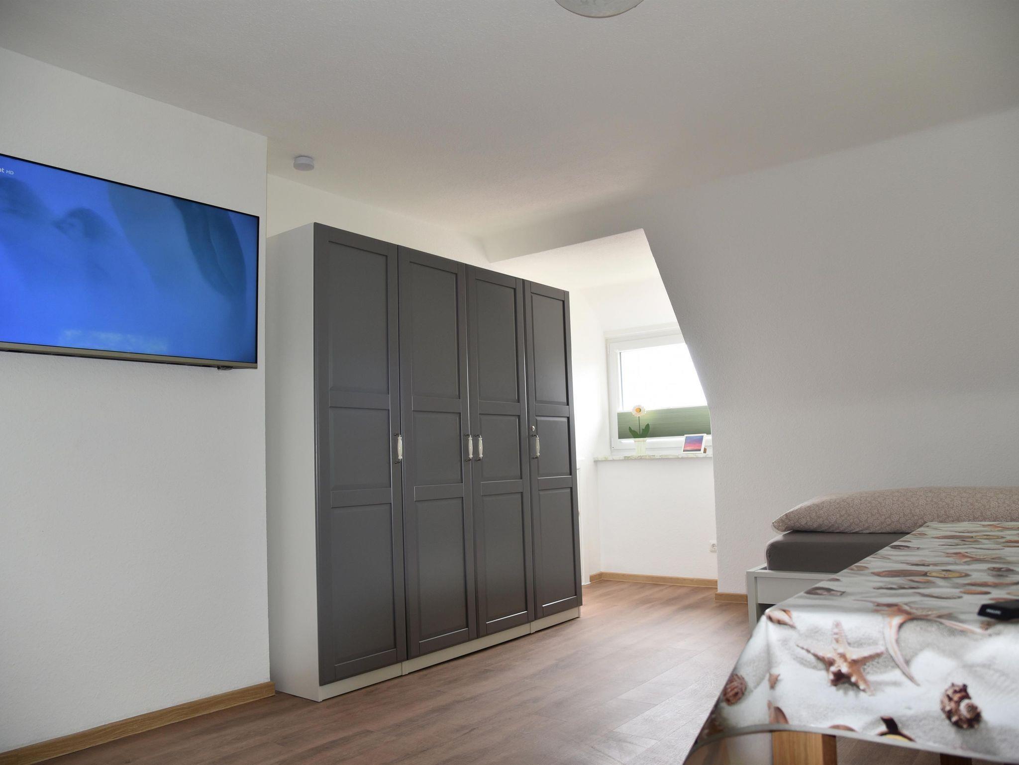 Den Anbau betreten Sie entweder über den Durchgang vom Essplatz in der Küche aus oder über den separaten Außeneingang. Im Anbau finden Sie einen weiteren Wohnbereich (mit riesigem Fernseher und großer Eckcouch) sowie vom Flur abgehend einen zusätzlichen Schlafraum und ein eigenes großzügiges Duschbad. Alle vier Schlafräume bieten entweder ein Doppelbett (EG und einer im OG Haus) oder je zwei Einzelbetten und Schränke.