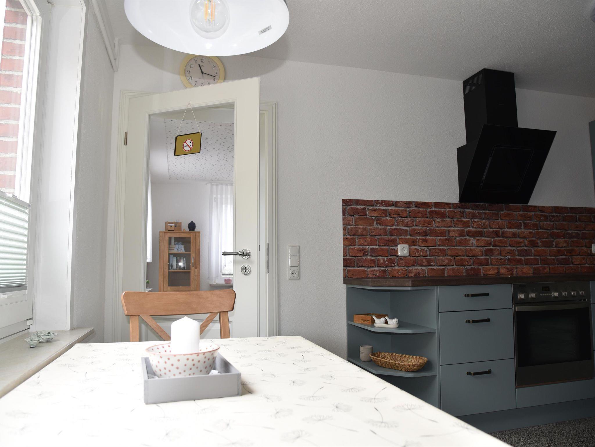 Die Küche ist komplett mit Herd (Cerankochfeld, 4 Flammen), Backofen, Mikrowelle, Geschirrspüler und Kühlschrank ausgestattet. Selbstverständlich sind Kaffeemaschine, Kaffeekapselmaschine (Nespresso), Wasserkocher und Toaster vorhanden.