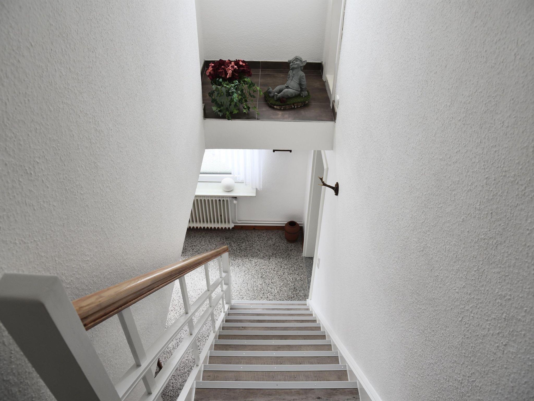 In der Diele befindet sich die Treppe in das Obergeschoss. Hier finden sich zwei weitere Schlafräume und ein Duschbad.