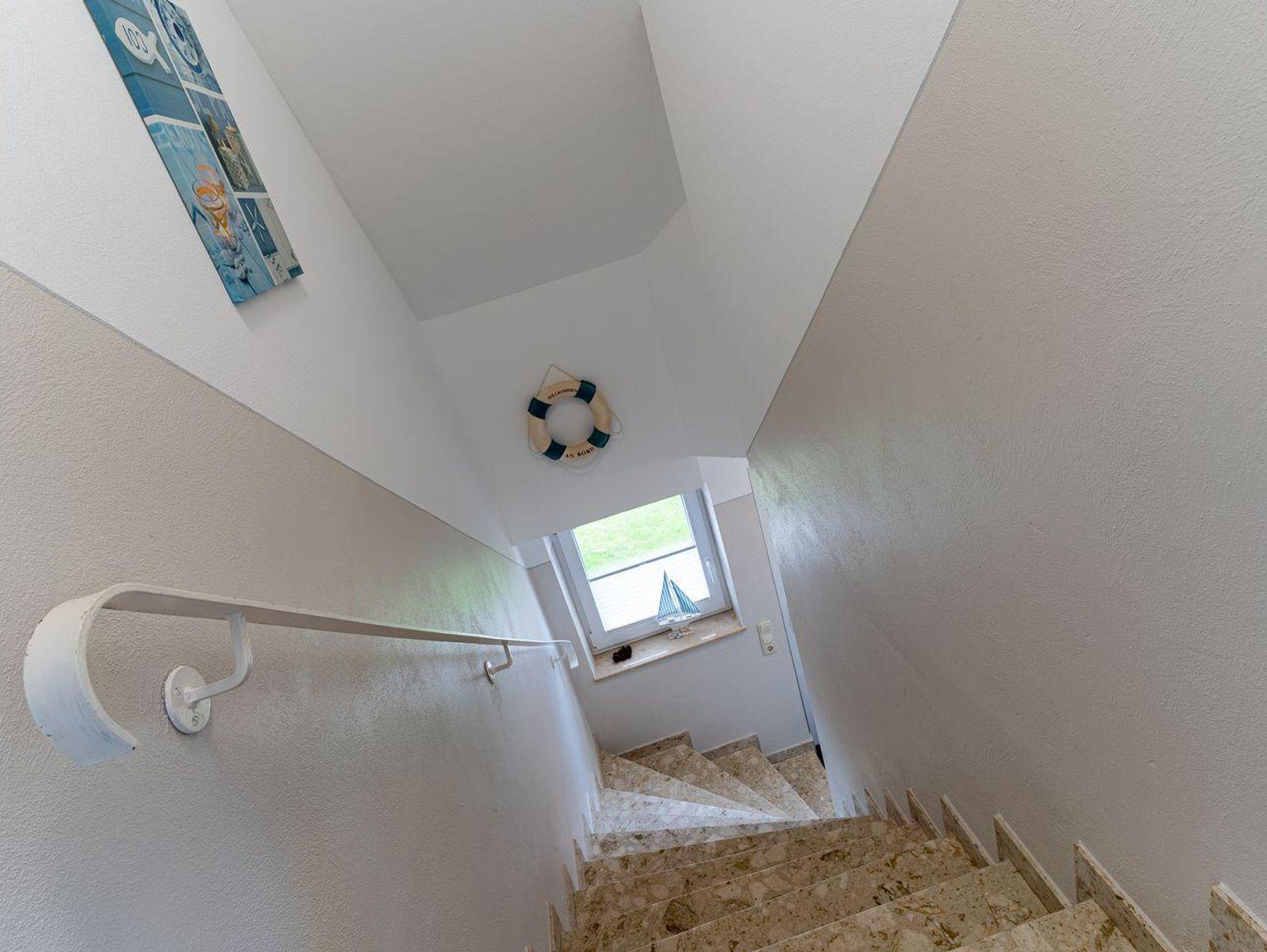 Über einen eigenen separaten Eingang gelangt man in den Flur zum Treppenaufgang in das Appartement Ausguck.