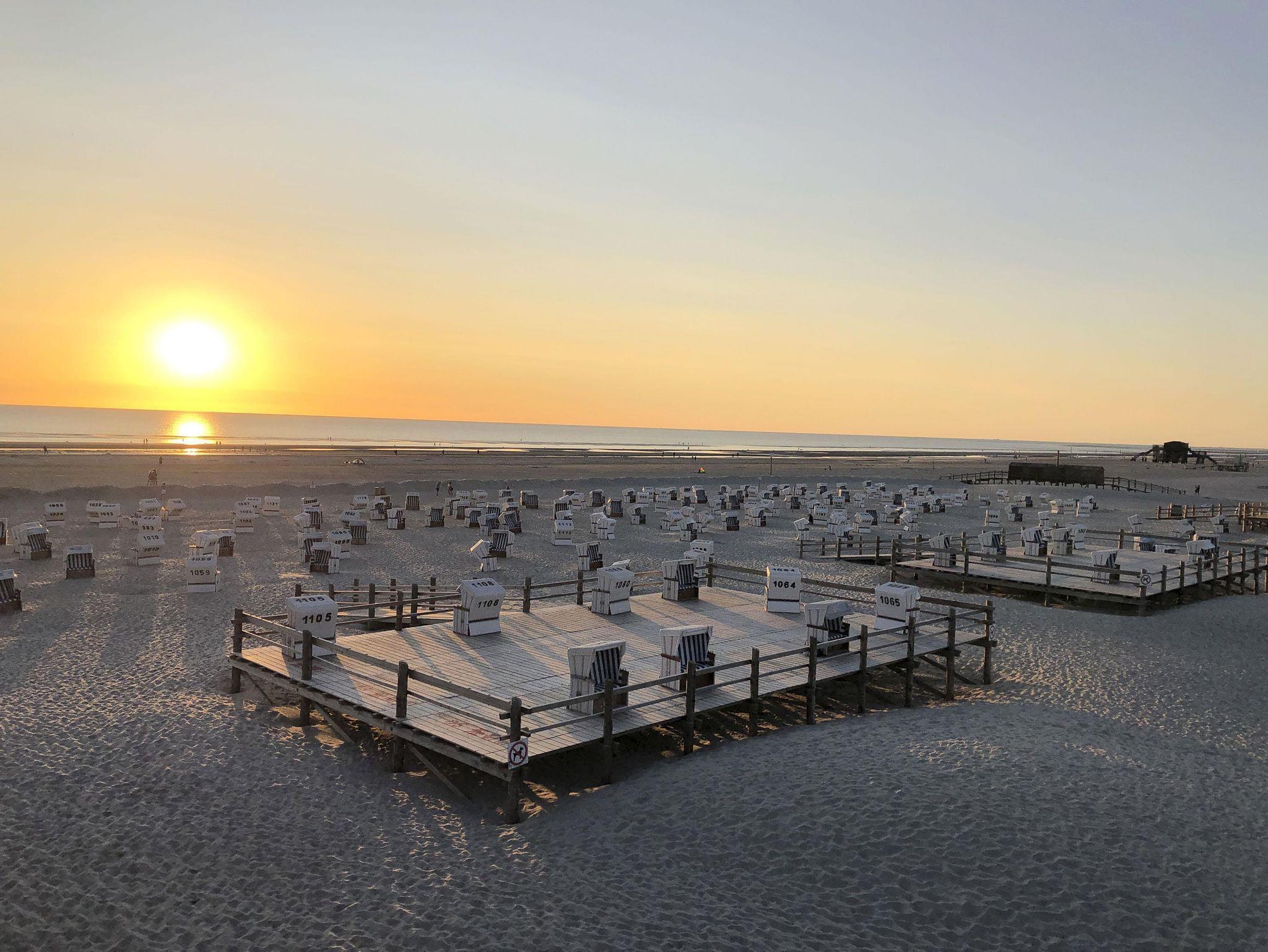 Am Strand findet sich die komplette Infrastruktur mit Spielplatz, Strandkorbvermietung und in den berühmten Pfahlbauten ein Restaurant, Sanitäranlagen und Badeaufsicht.