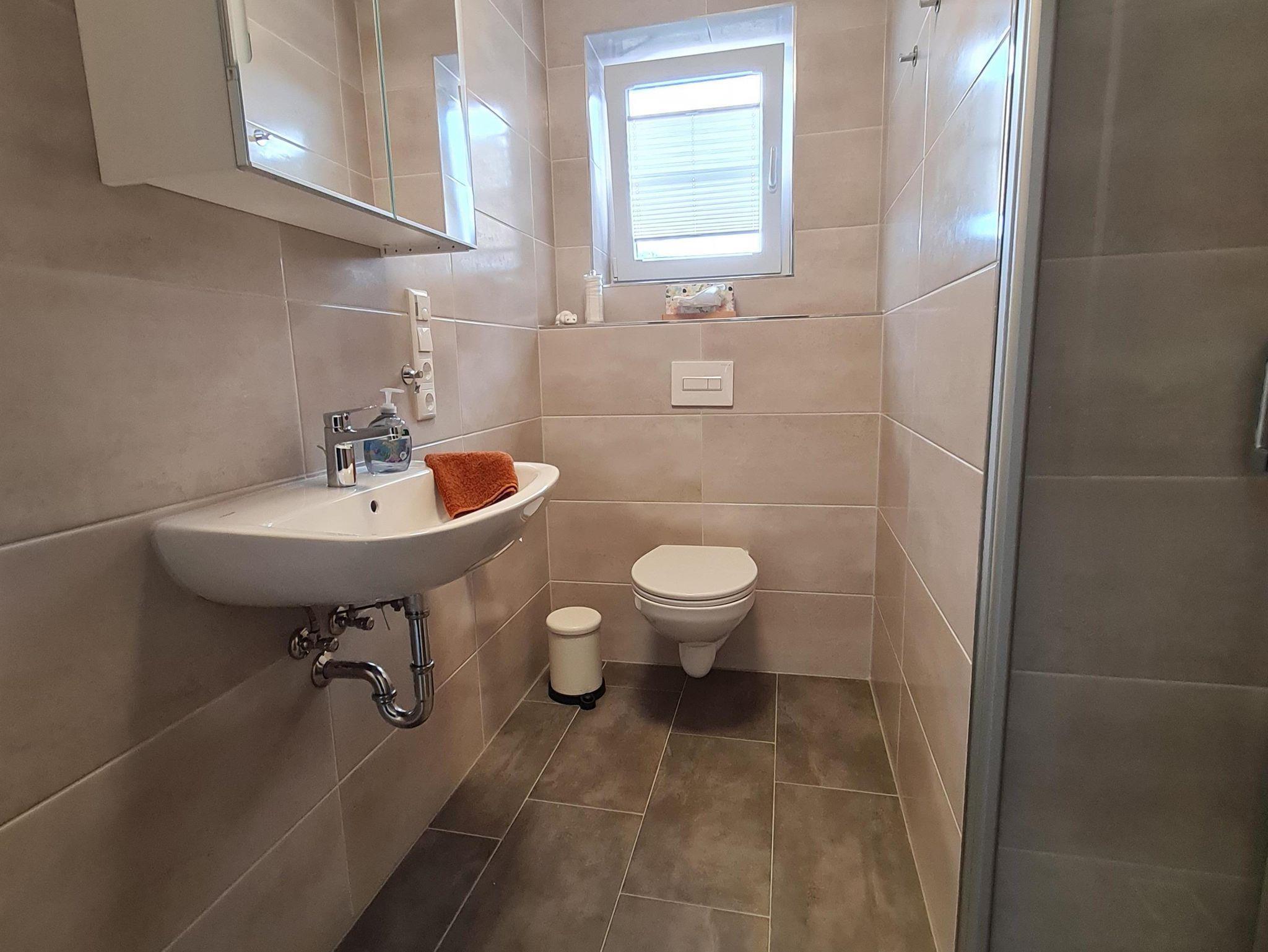 Im Erdgeschoss findet sich weiter ein vollwertiges Duschbad und ein Hauswirtschaftsraum mit Waschmaschine, Trockner und Kühltruhe.